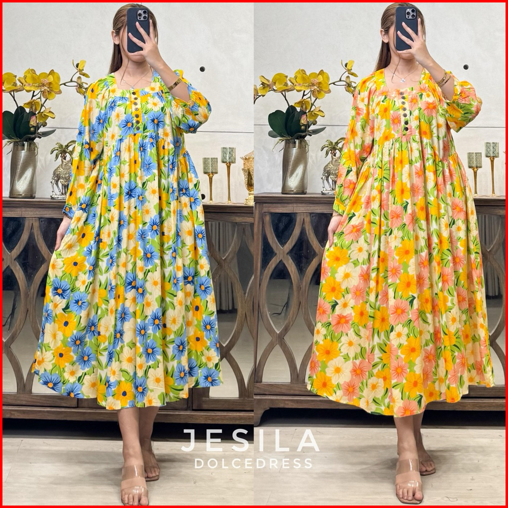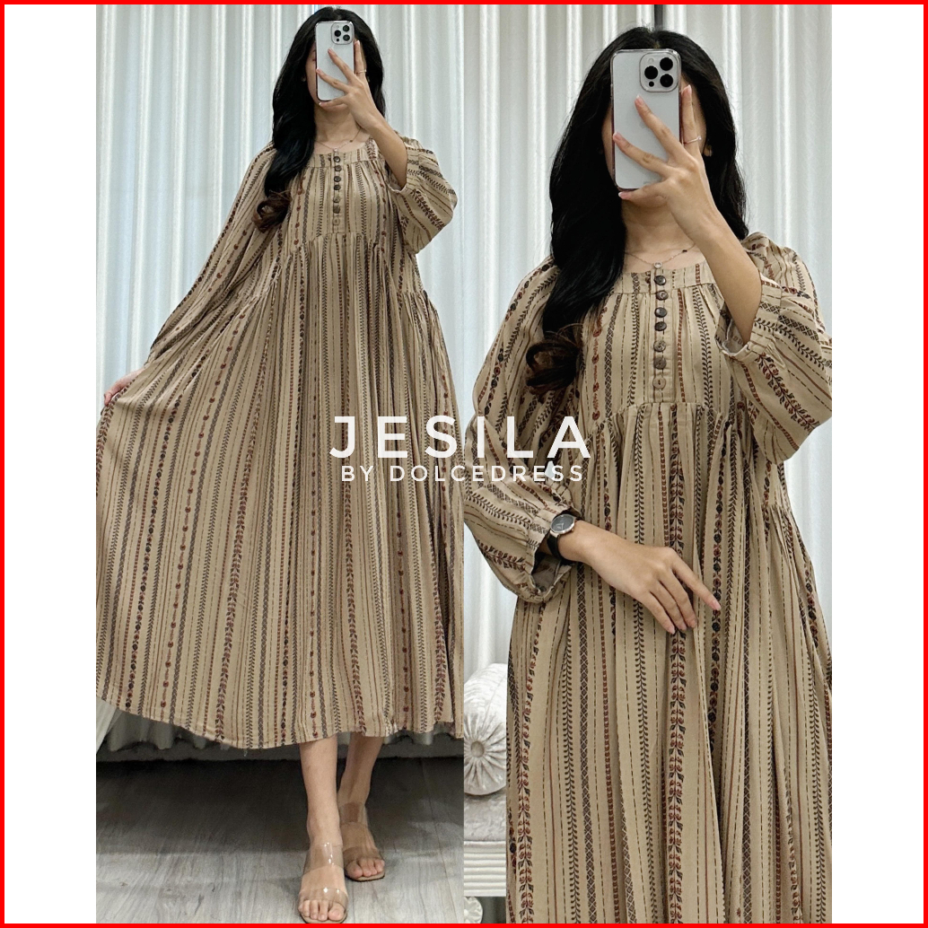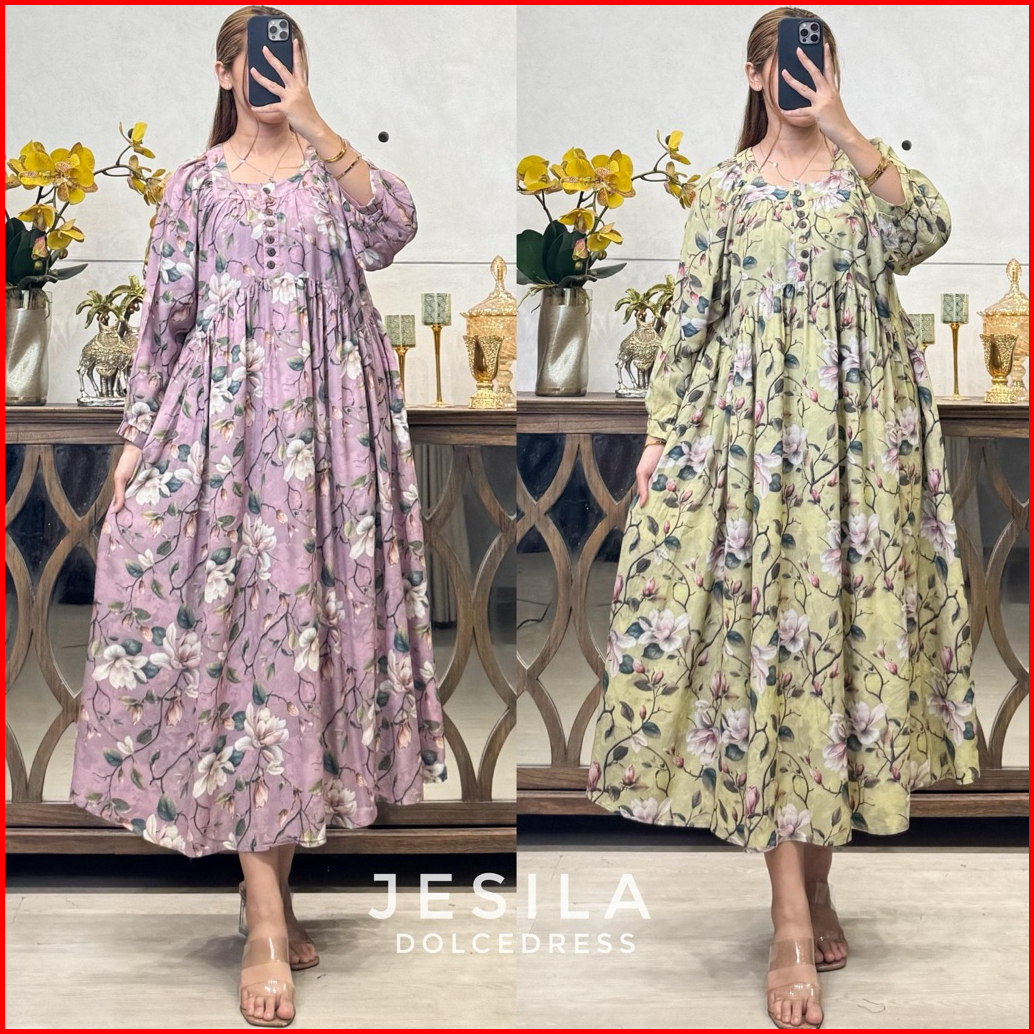 Dolcedress Jesila Midi Dress Lengan 7 8 Bahan Rayon