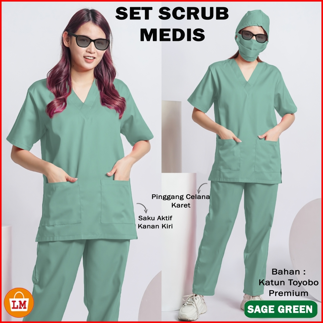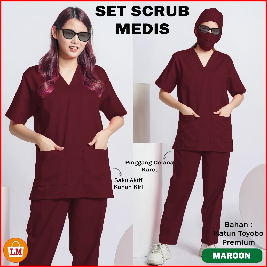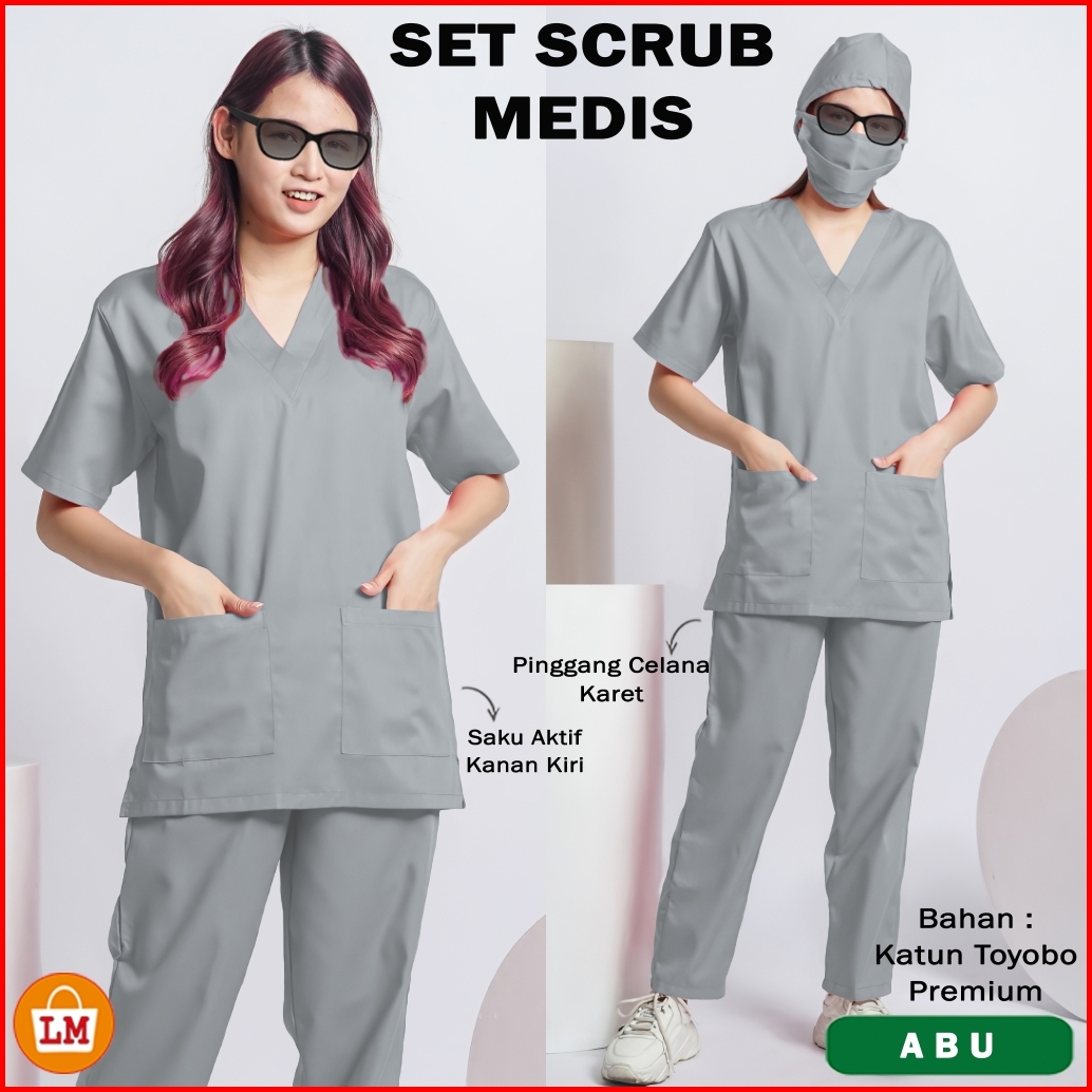 Set Baju Jaga Medis Wanita Setelan Seragam Scrub Perawat Dokter Rumah Sakit Lengan Pendek Size M L Xl Xxl 36380