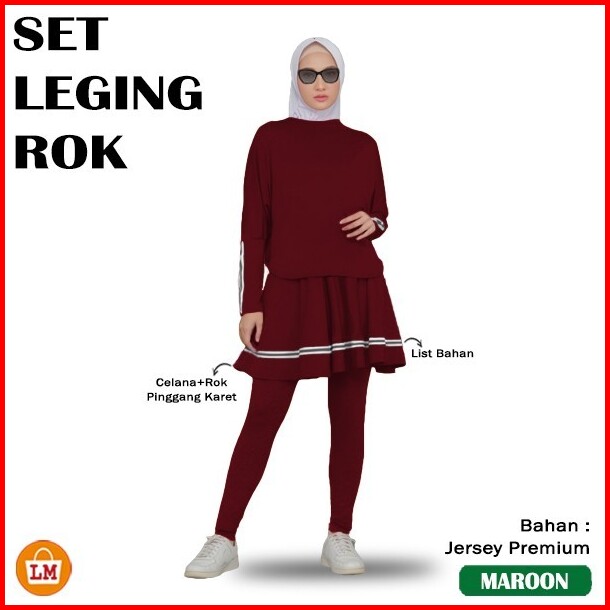 Set Leging Rok Setelan Baju Skirt Olahraga Wanita Muslimah Lengan Panjang Bahan Jersey Size S M Xl 36664 Sport Badminton
