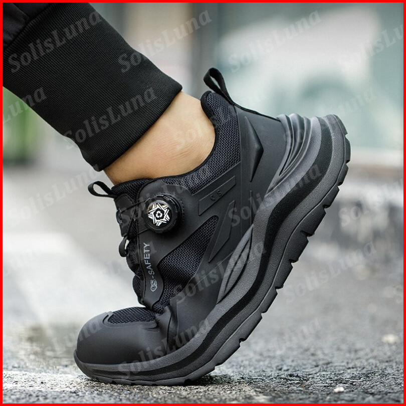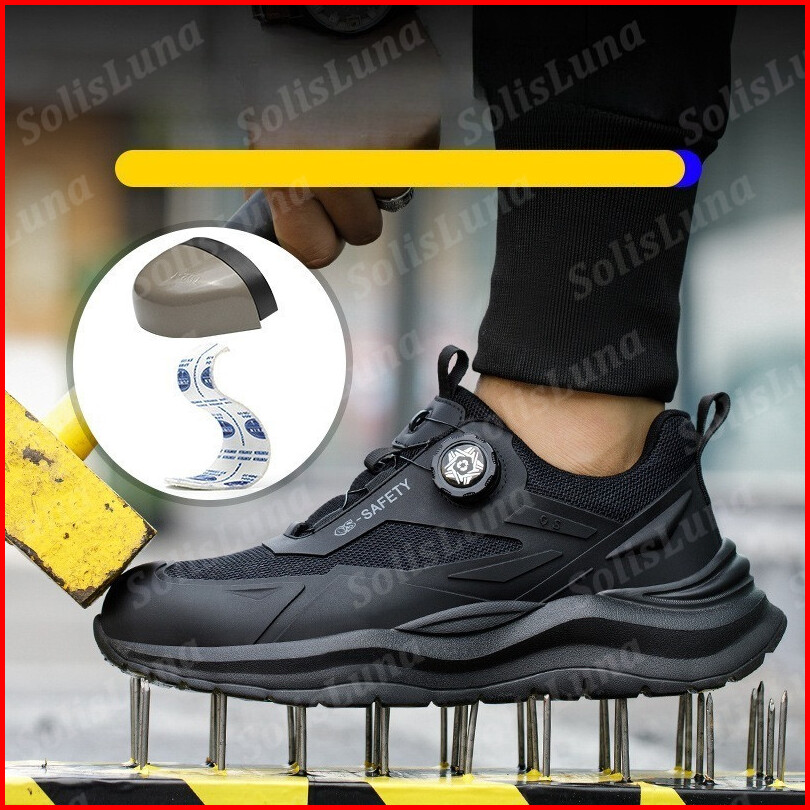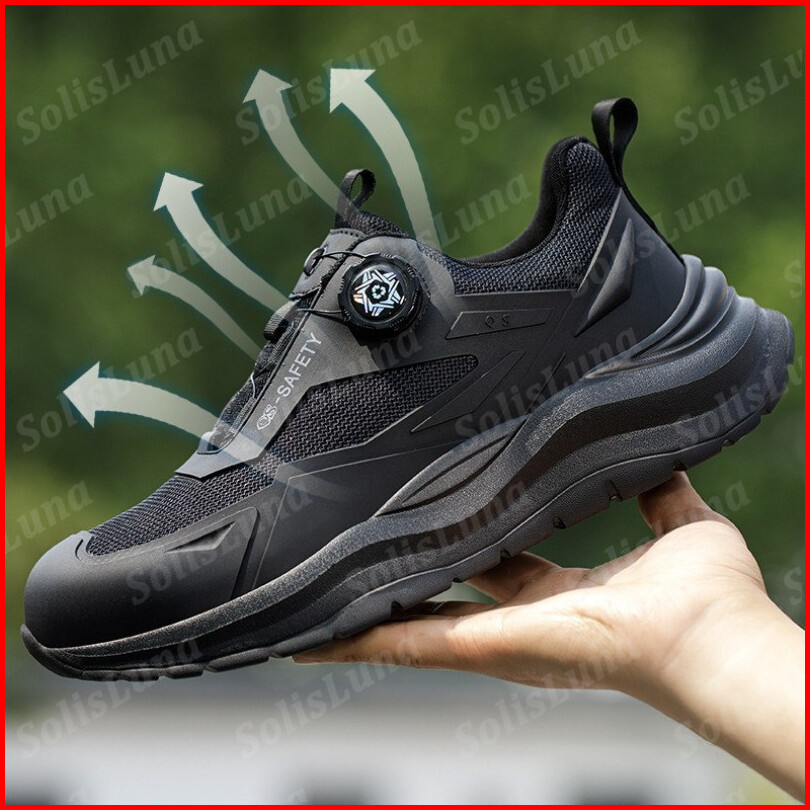 Sepatu Safety Shoes Ujung Besi Tali Putar Simple Shoelace Anti Smash Anti Slip Oil Flexibel Super Ringan Sepatu Safety A