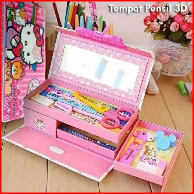 Cewek Cowok Kotak Pensil Kode 3d Hologram Karakter Bt21 Tempat Pensil Fancy 3 Susun Pensil Case 3d