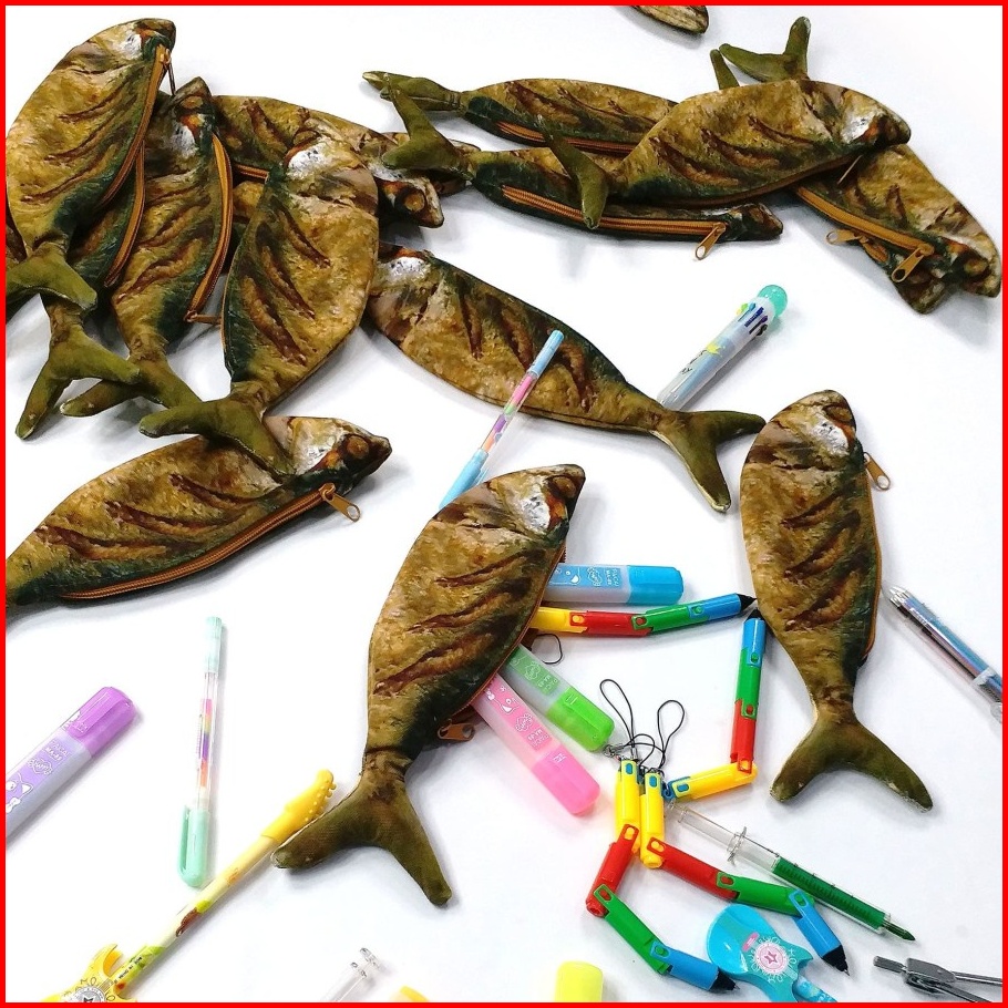 Tempat Pensil 29x8cm - Ikan Kembung Goreng Drill Crafting Linen Kado Unik Cowo Cewe Ulang Tahun Tempat Pensil Sekolah Bu