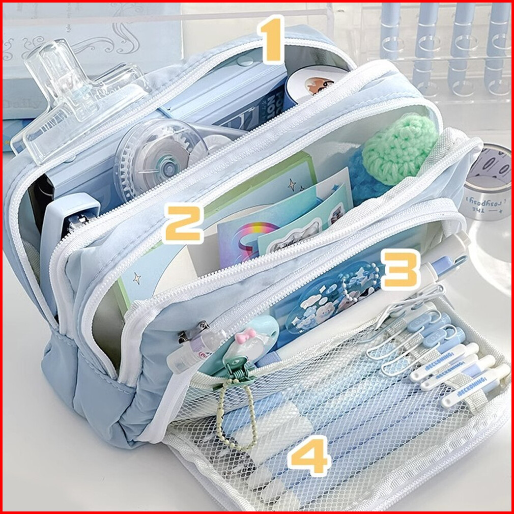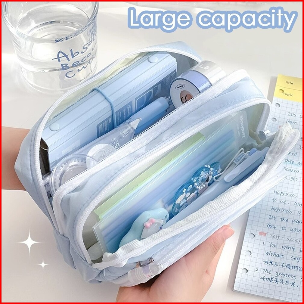 Tempat Alat Tulis Siswa Aesthetic - Tas Pensil Besar Material Resleting Premium Desain Warna Solid New Ultra Large Capac