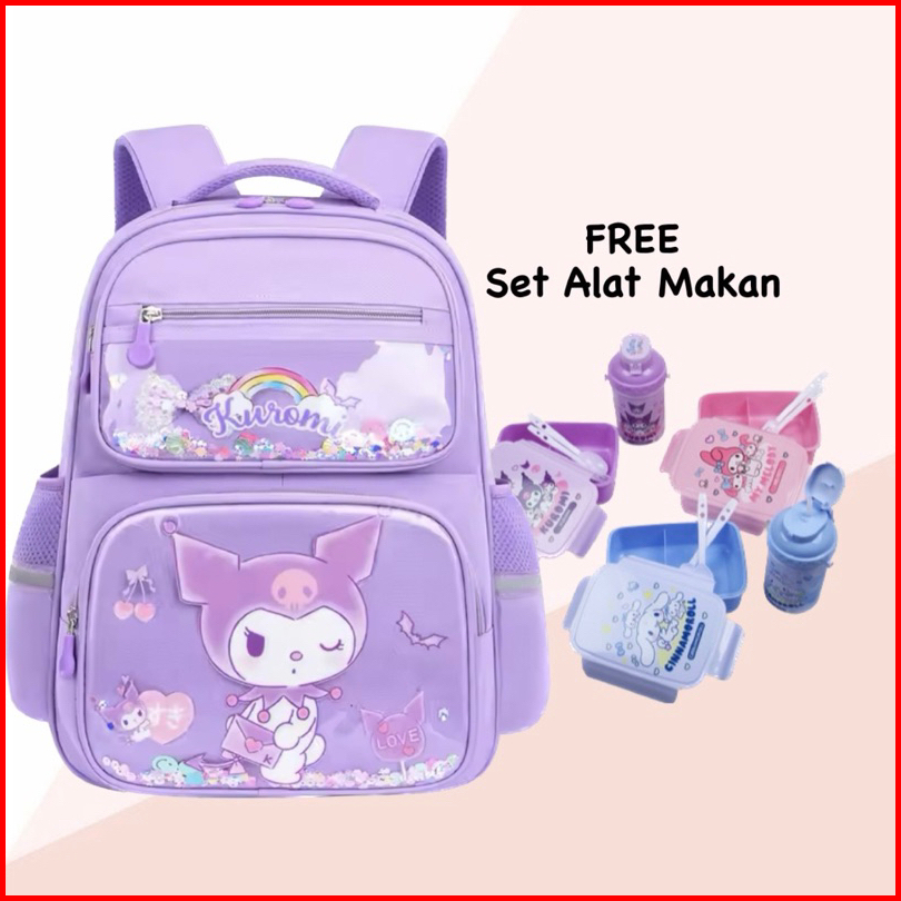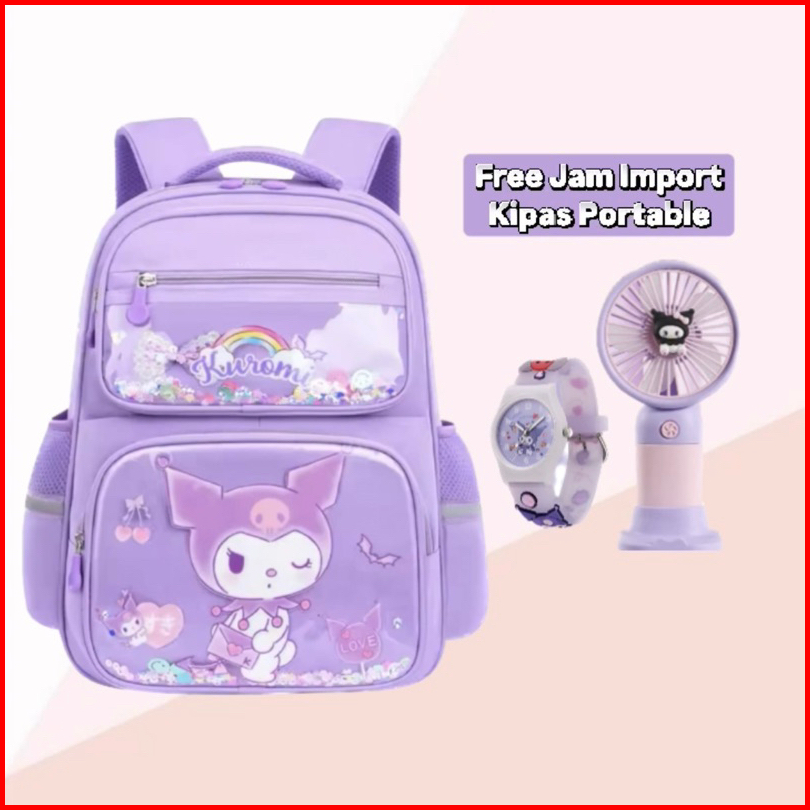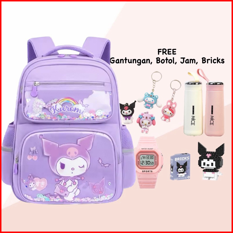 Tas Punggung Ransel Sekolah Sanrio Mika Kuromi 7in1 Paket Lengkap Jam Botol Atk Karakter Tk Sd Smp
