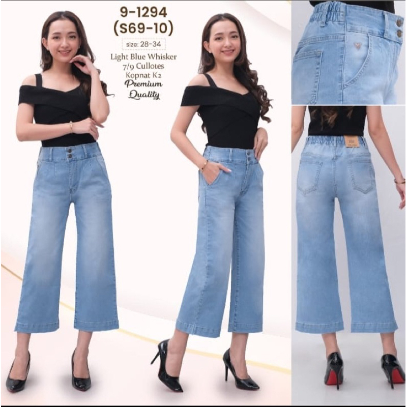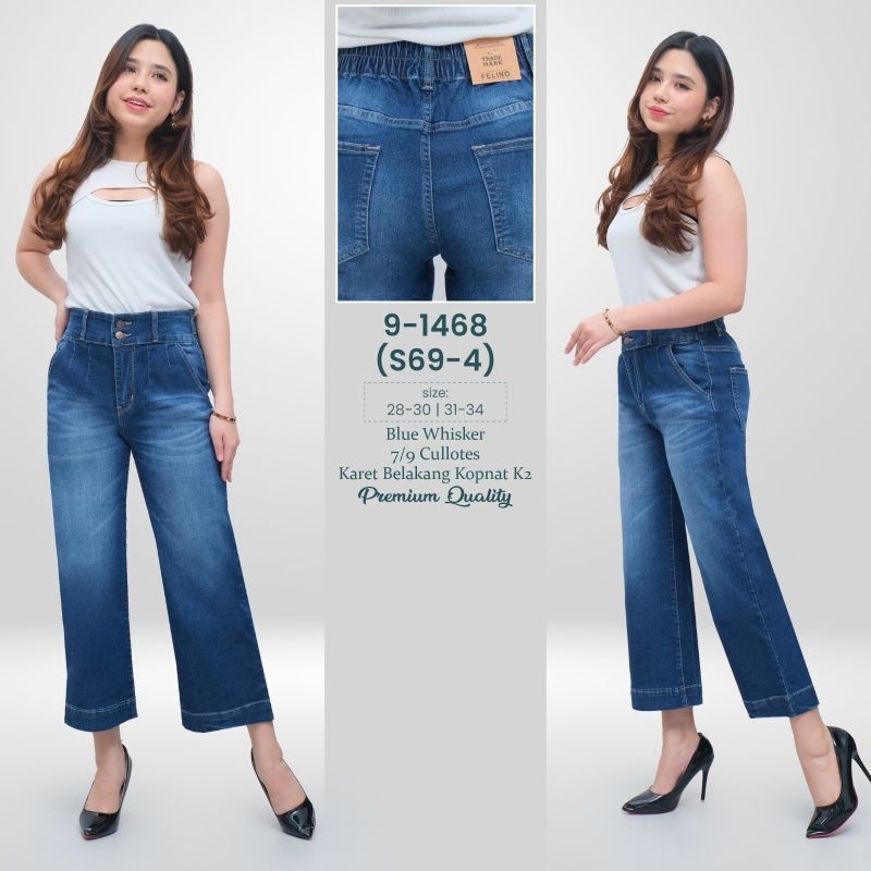 CELANA JEANS KULOT WANITA MISS2000 7/9 KARET BELAKANG KANCING 2 Sz 28-34