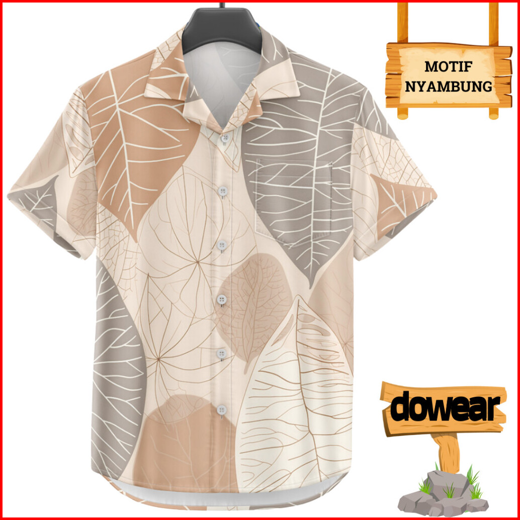 Dowear Baju Kemeja Motif Laki Laki Perempuan Full Print Printing Kemeja Vintage 340 Daun Coklat