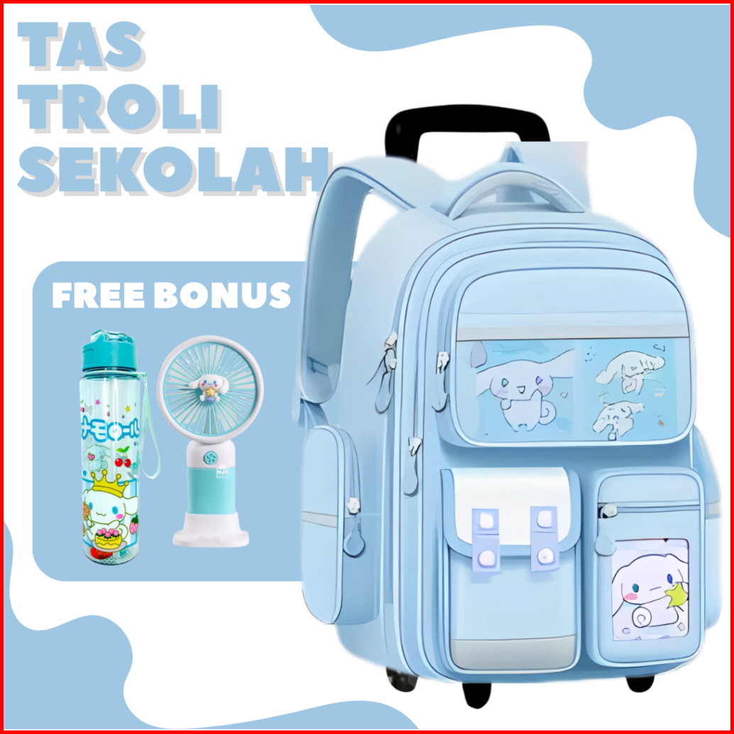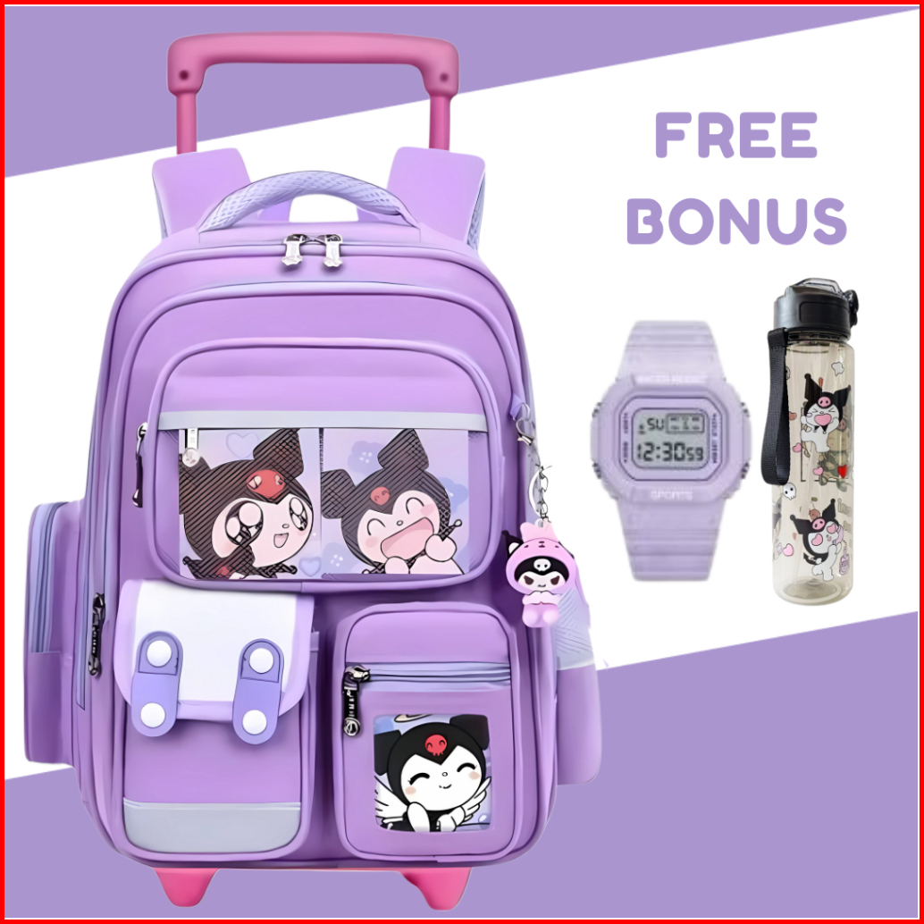 Tas Trolly Anak Kuromi Free Botol Minum Atk - Tas Koper Anak Paud Tk Sd - Tas Dorong Anak Perempuan