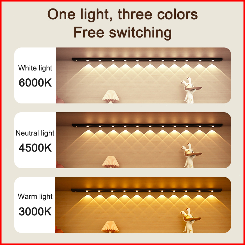 Lampu Kabinet Tricolor Dimming Magnetic Motion Sensor Lampu Strip Lampu Tidur Lemari Ruang Tamu Dan Koridor 20 40 60 80c