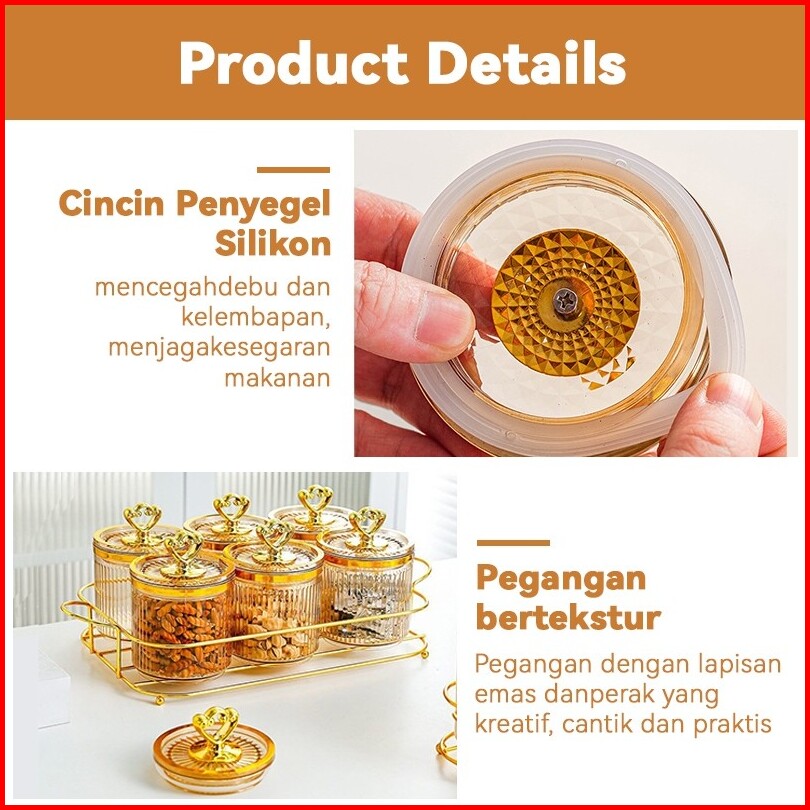 7pcs Set Toples Set Mewah Bersegel Dengan Nampan Toples Nampan Makanan Ringan Tangki Segel Plastik Guci Makanan Dan Kota