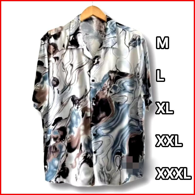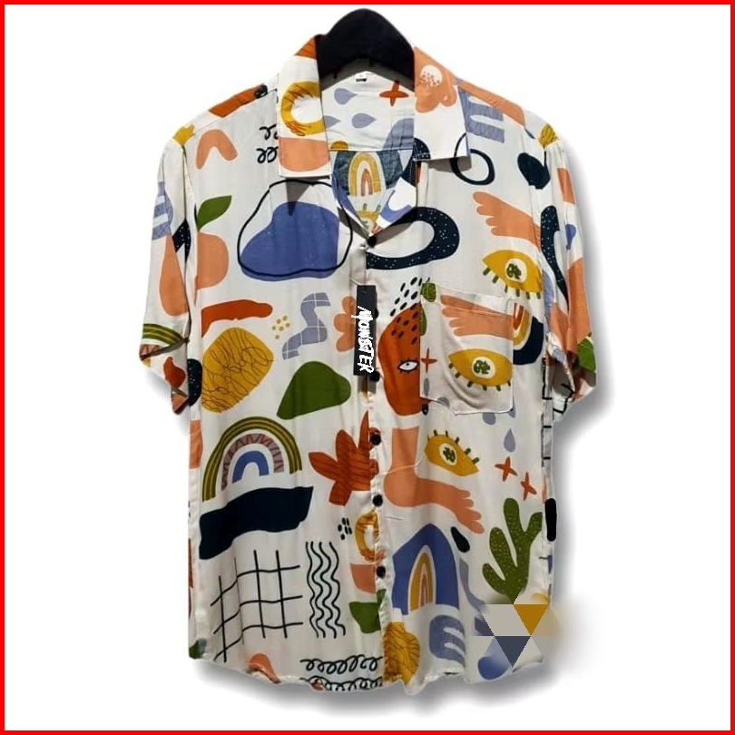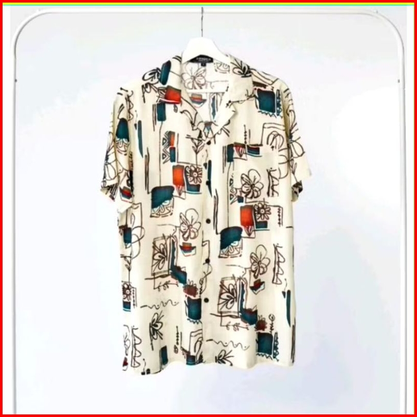 Kemeja Bahan Rayon Dingin Sekali Kemeja Pria Vintage Casual Abstrak Lengan Pendek Retro Pantai Hawai