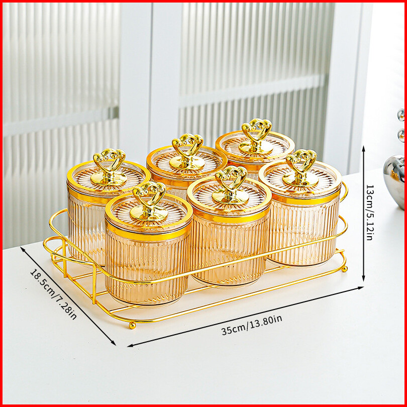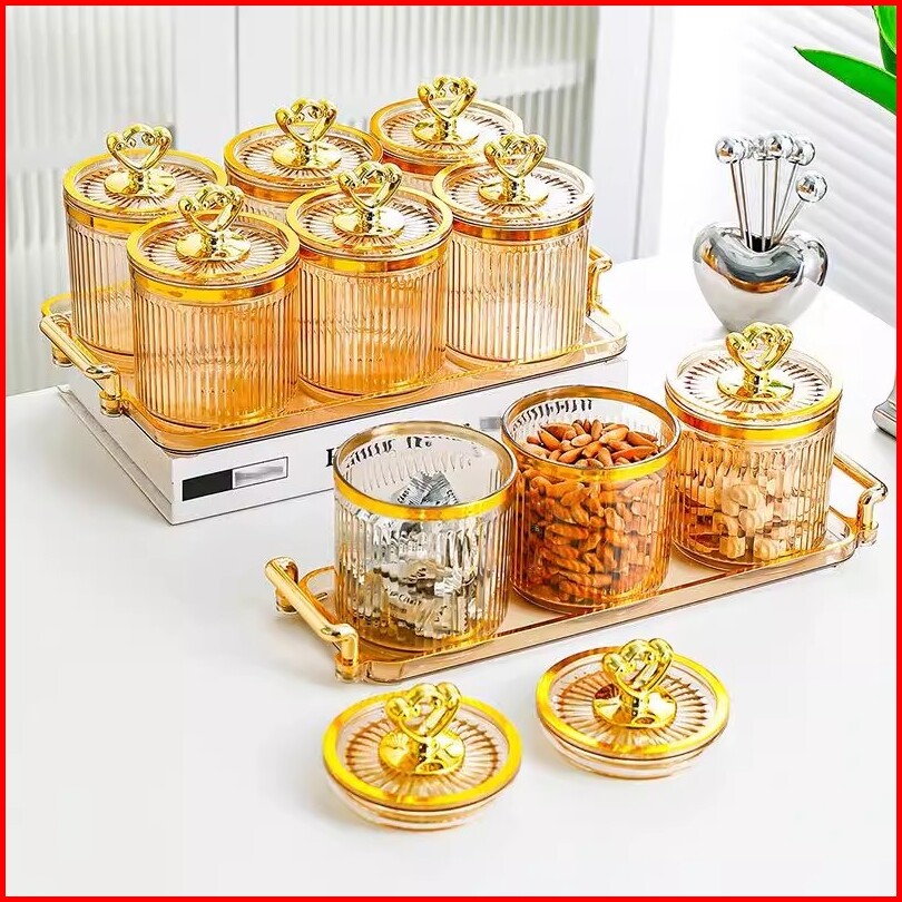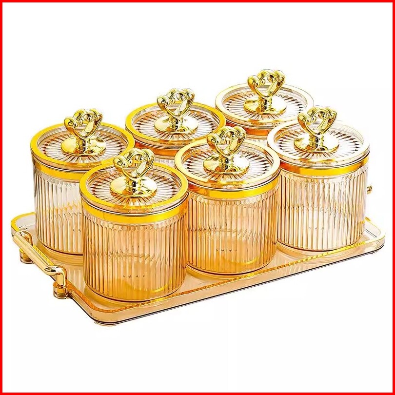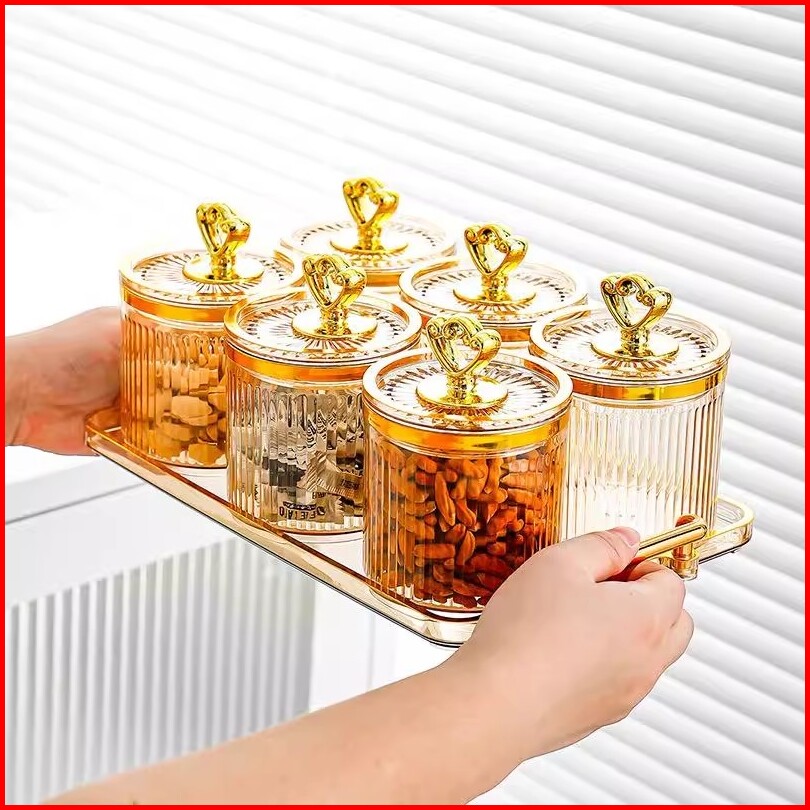 7 In 1--toples Set Mewah Bersegel Dengan Nampan Tangki Segel Plastik Guci Makanan Dan Kotak Penyimpanan Dapur Toples Set