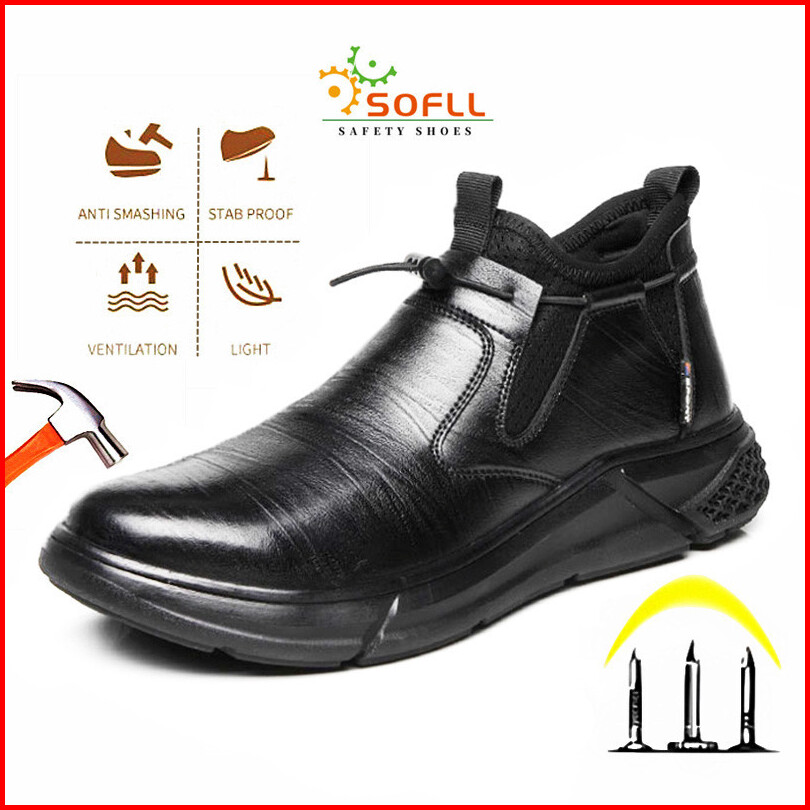 Sofll Leather Waterproof Safety Shoes High Cut Steel Toe Cap Anti-smash Oil-resistance Safety Boots