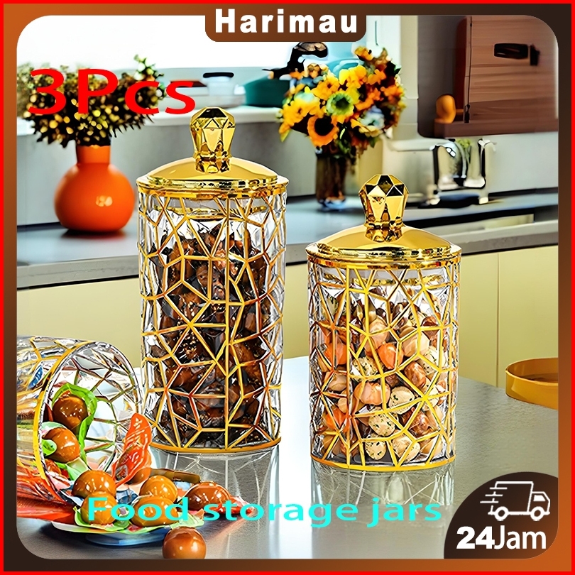 Set Toples Mewah Set Toples Mewah Aesthetic Tangki Penyimpanan Camilan Tangki Segel Penyimpanan Toples