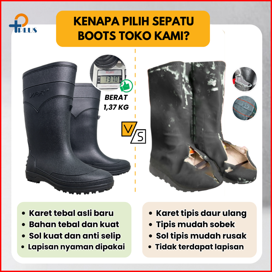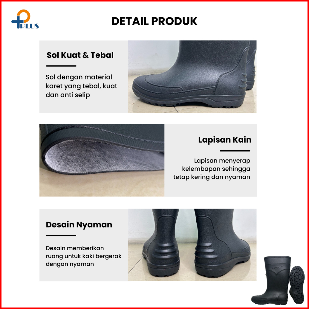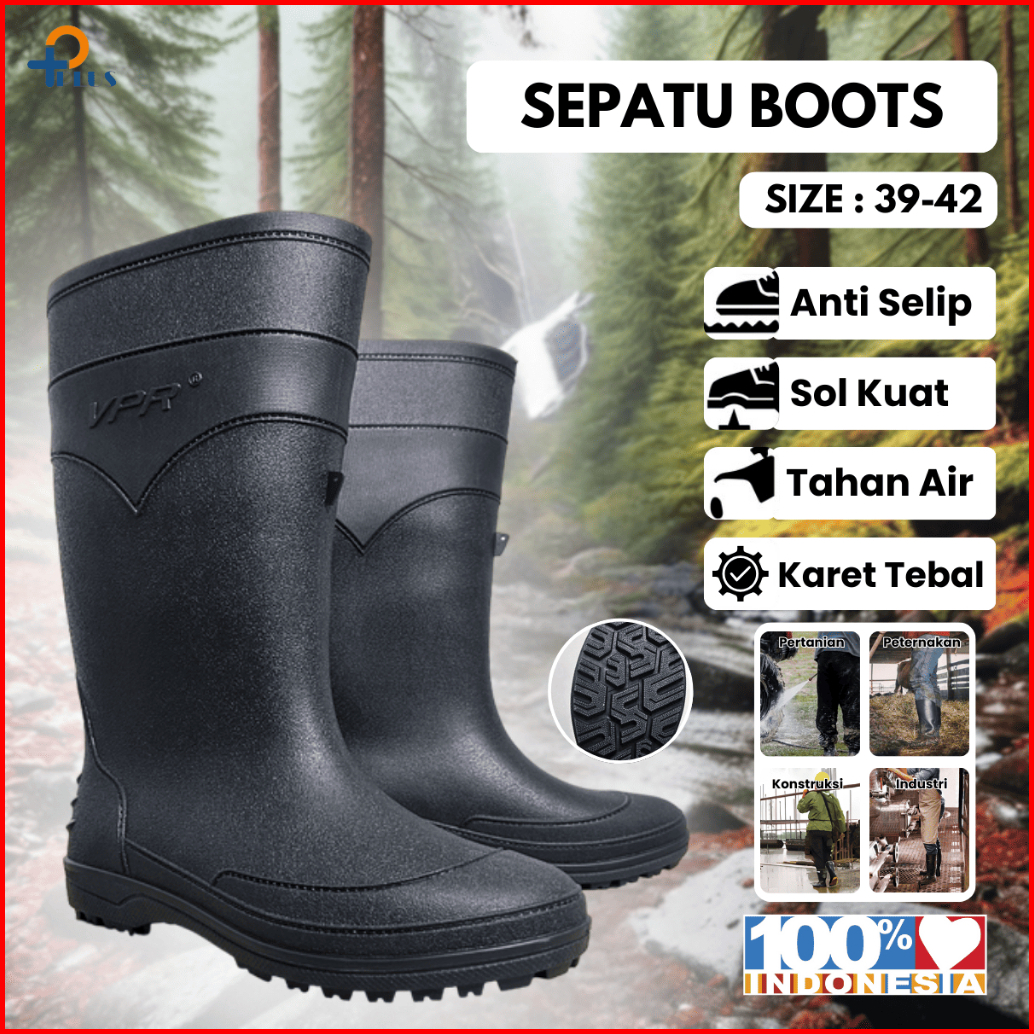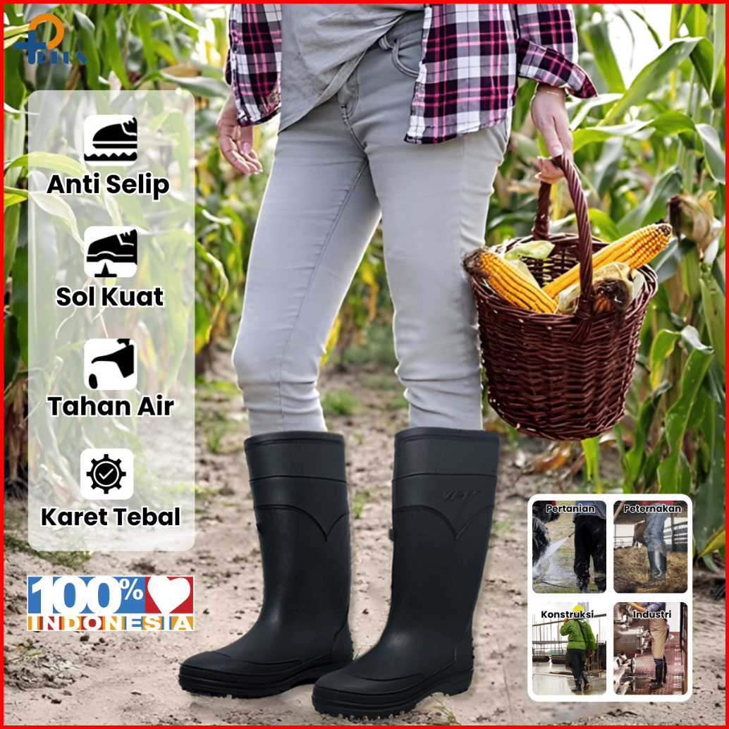 Pplus Sepatu Boot Tinggi Hitam Boots Karet Lokal Lentur Anti Air Slip Perkebunan