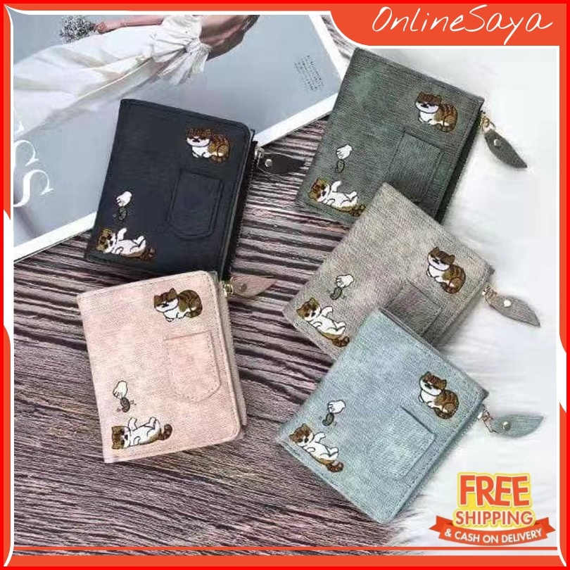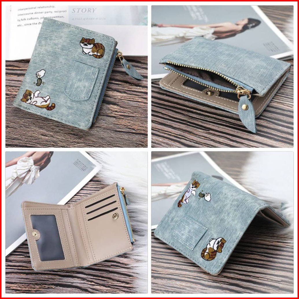 Dompet Wanita Lipat Kulit Kucing Felicia Import Murah Motif Wa033b2 Denim Ori C18219 Korea