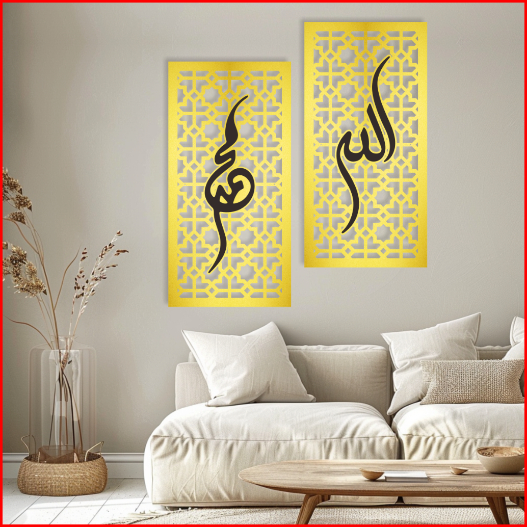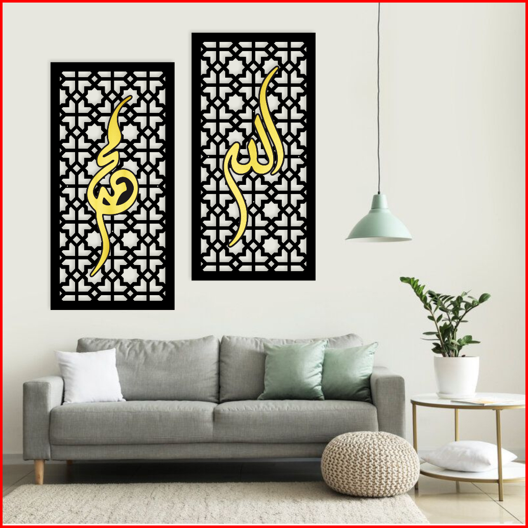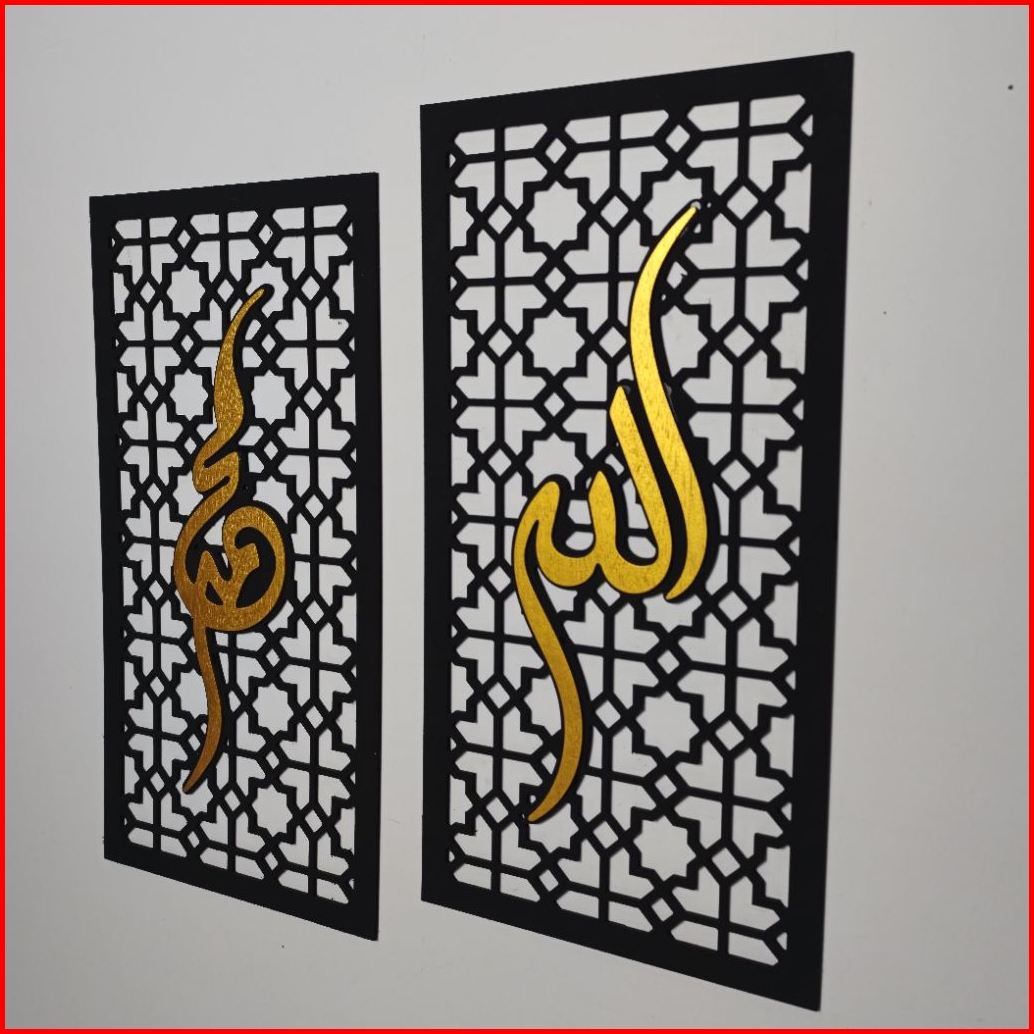 Hiasan Dinding Aesthetic Kayu Motif Kaligrafi Tulisan Allah Muhammad Pajangan Rumah Dekorasi Ruangan Minimalis Hd3