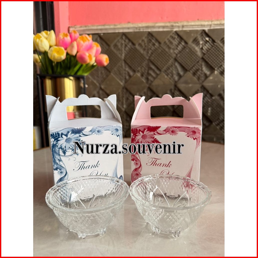 New Isi 50pcs Souvenir Mangkok Kaca Crystal Kemasan Box Motif Nurza.souvenir