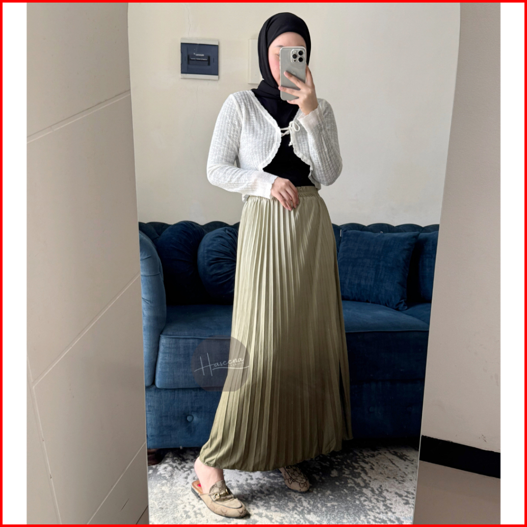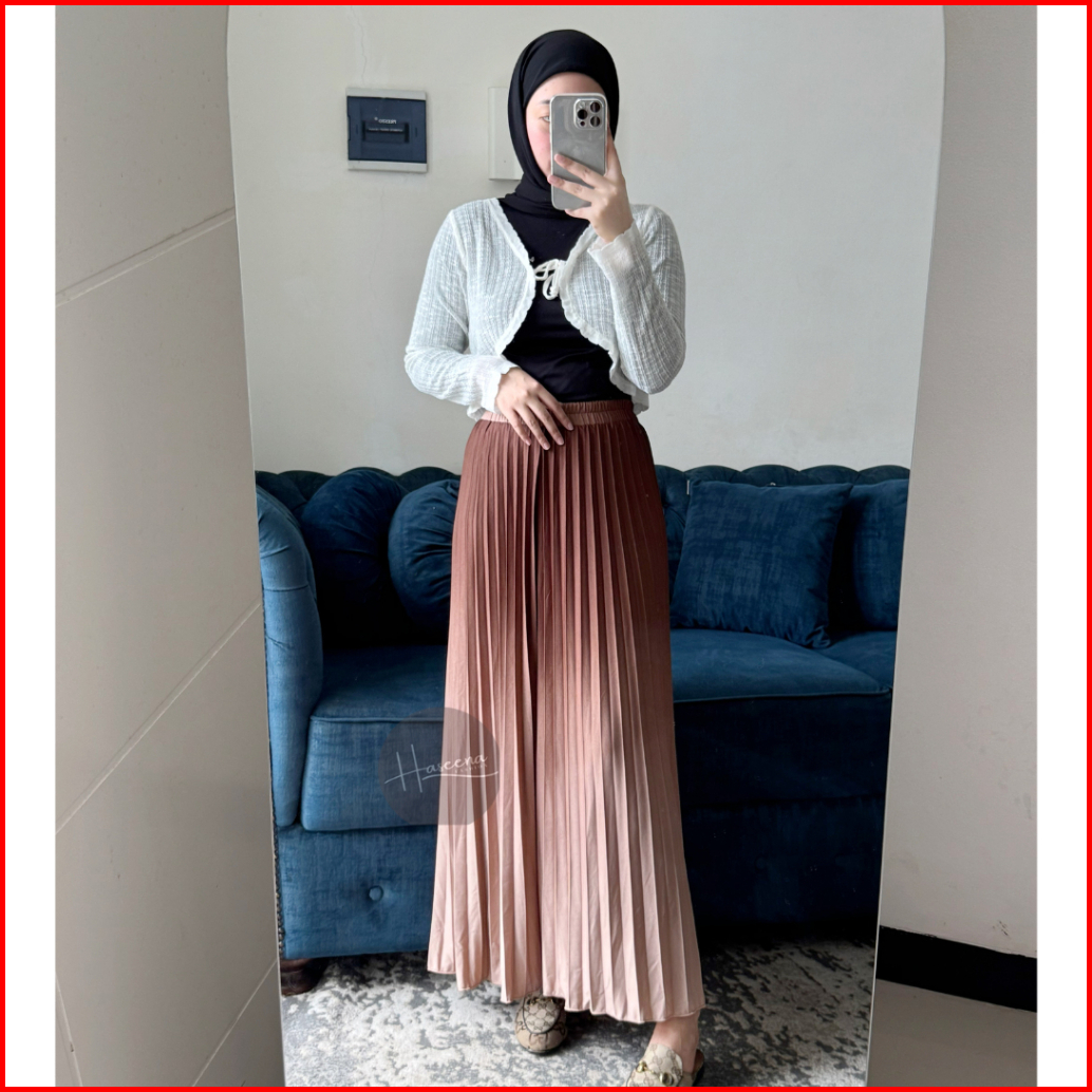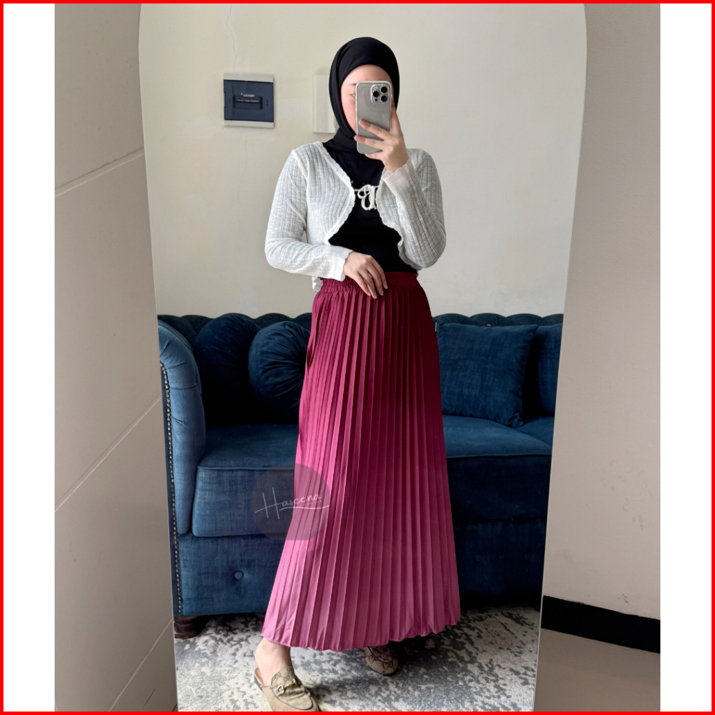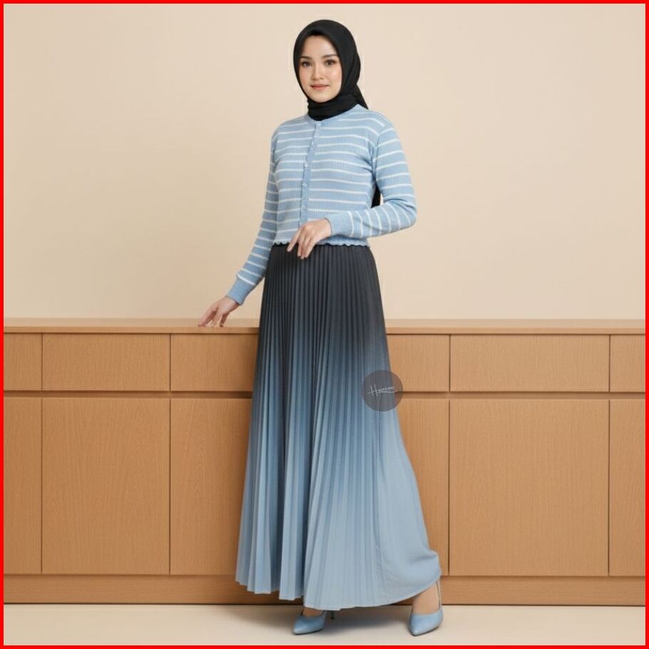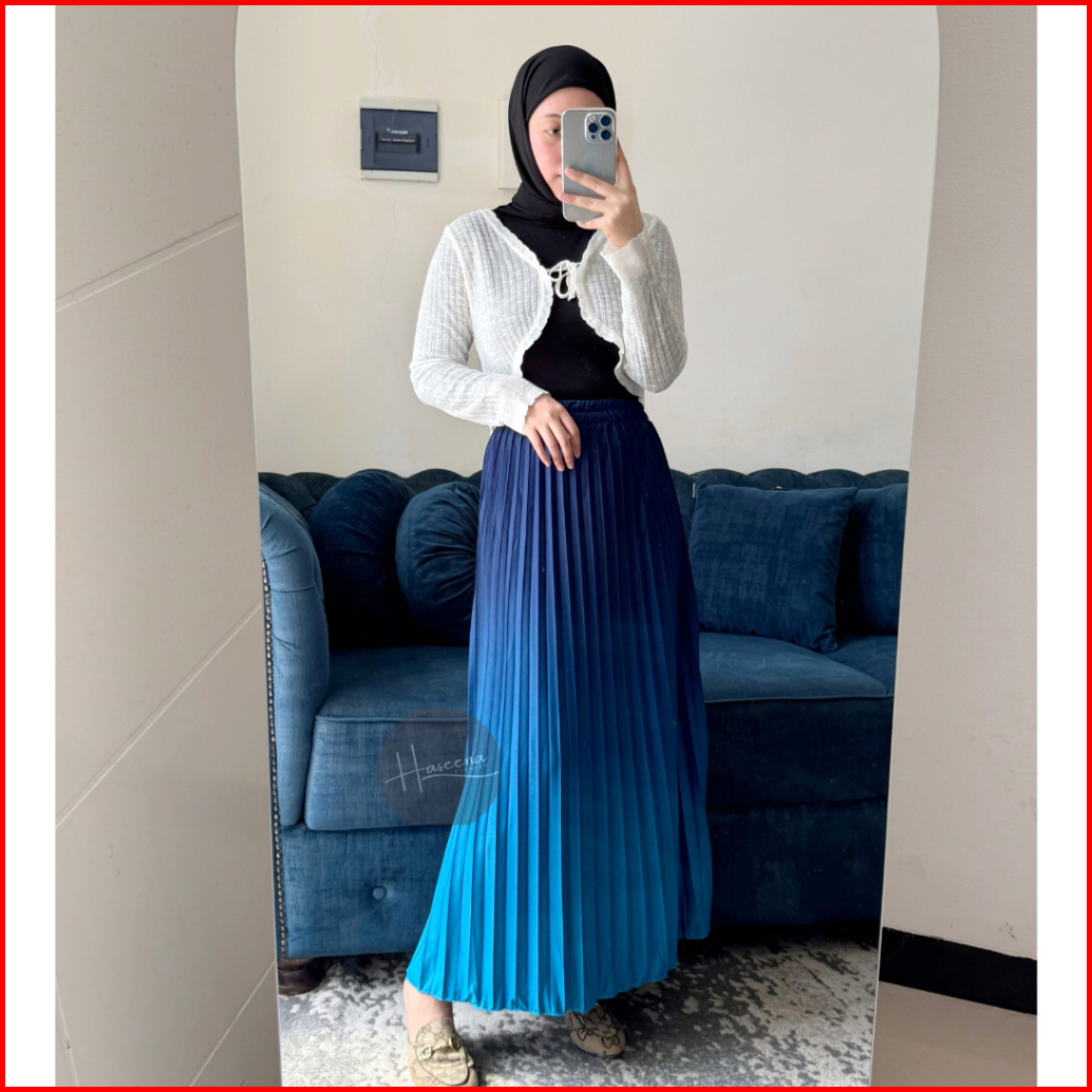 Haseena Rok Plisket Gradasi Hilya Mayung Panjang Maxi Bawahan Wanita Kombinasi Pleated Skirt