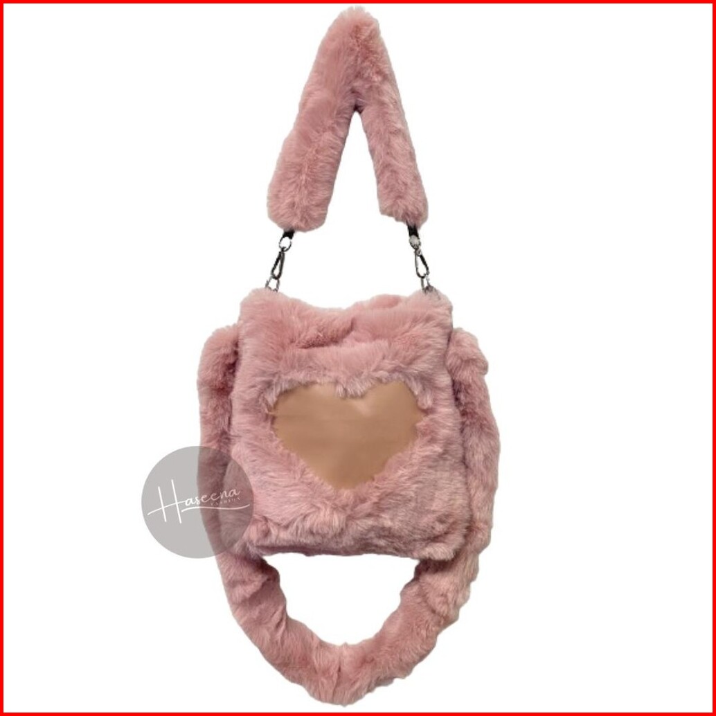 Haseena Tas Bahu Selempang Wanita Elsa Bulu Polos 2 In 1 Fluffy Sling Bag Daily
