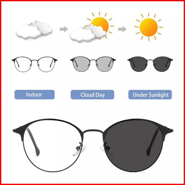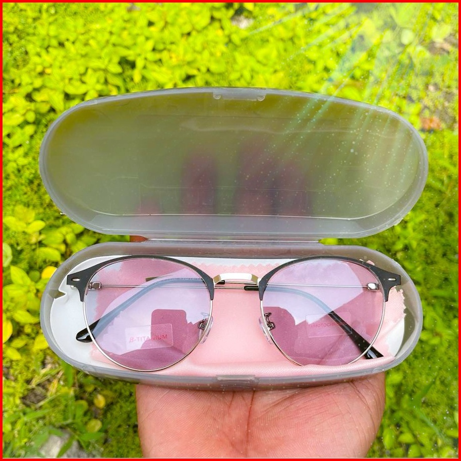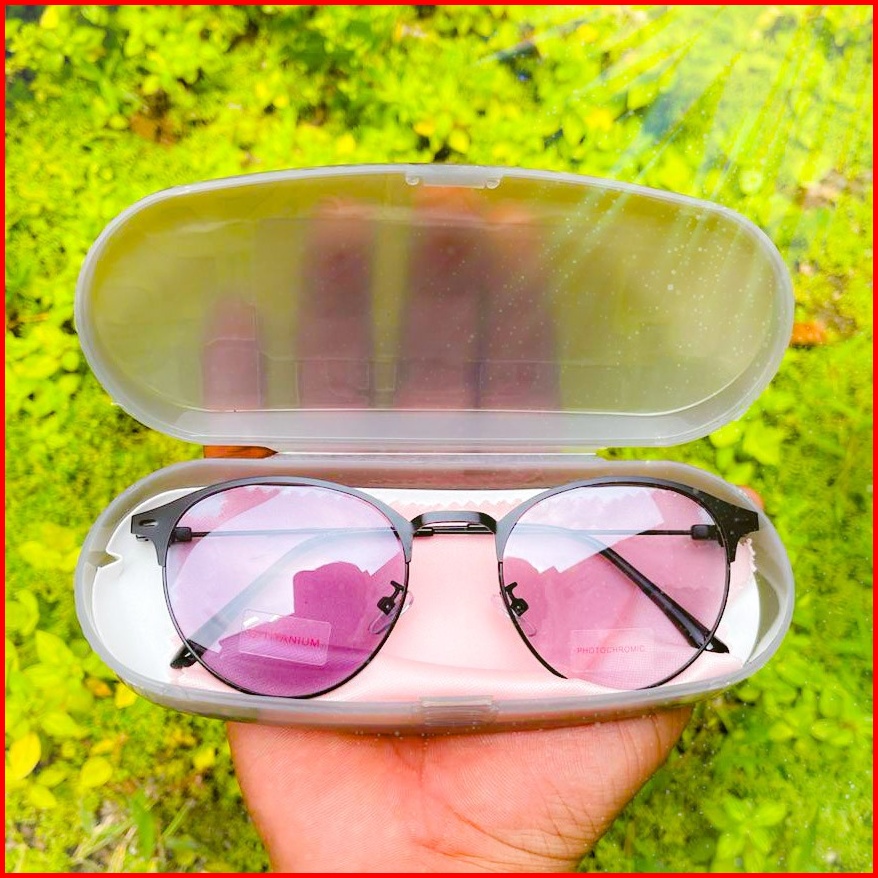 Termurah New Photocromic Kacamata Oval Titanium Korean New Wanita Pria Photocromic Style Vintage