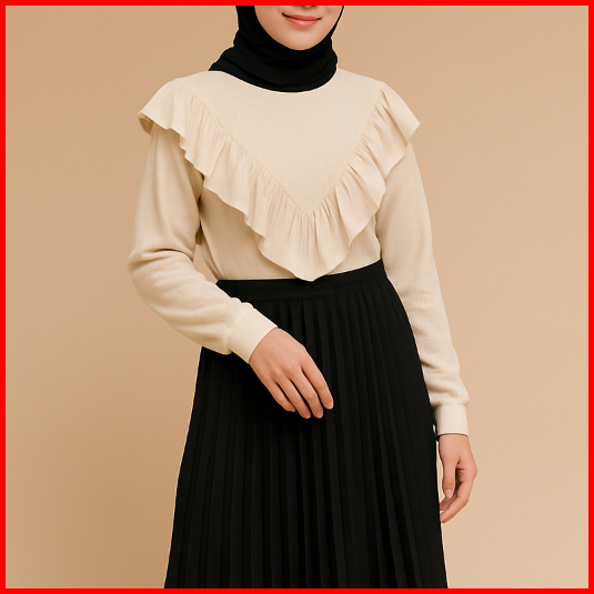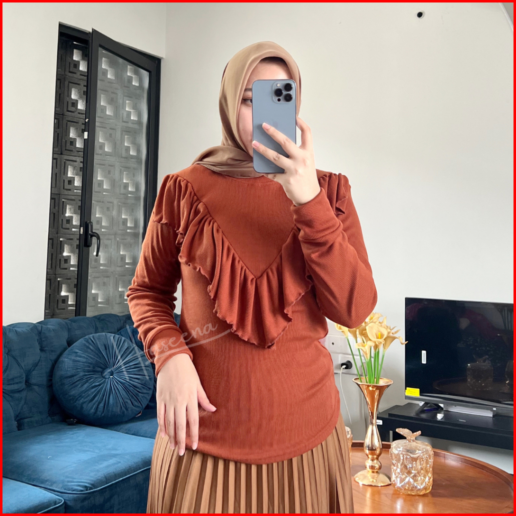 Haseena Blouse Ruffle Lily Atasan Rumbai Lengan Panjang Cotton Rib Layer Ruffle