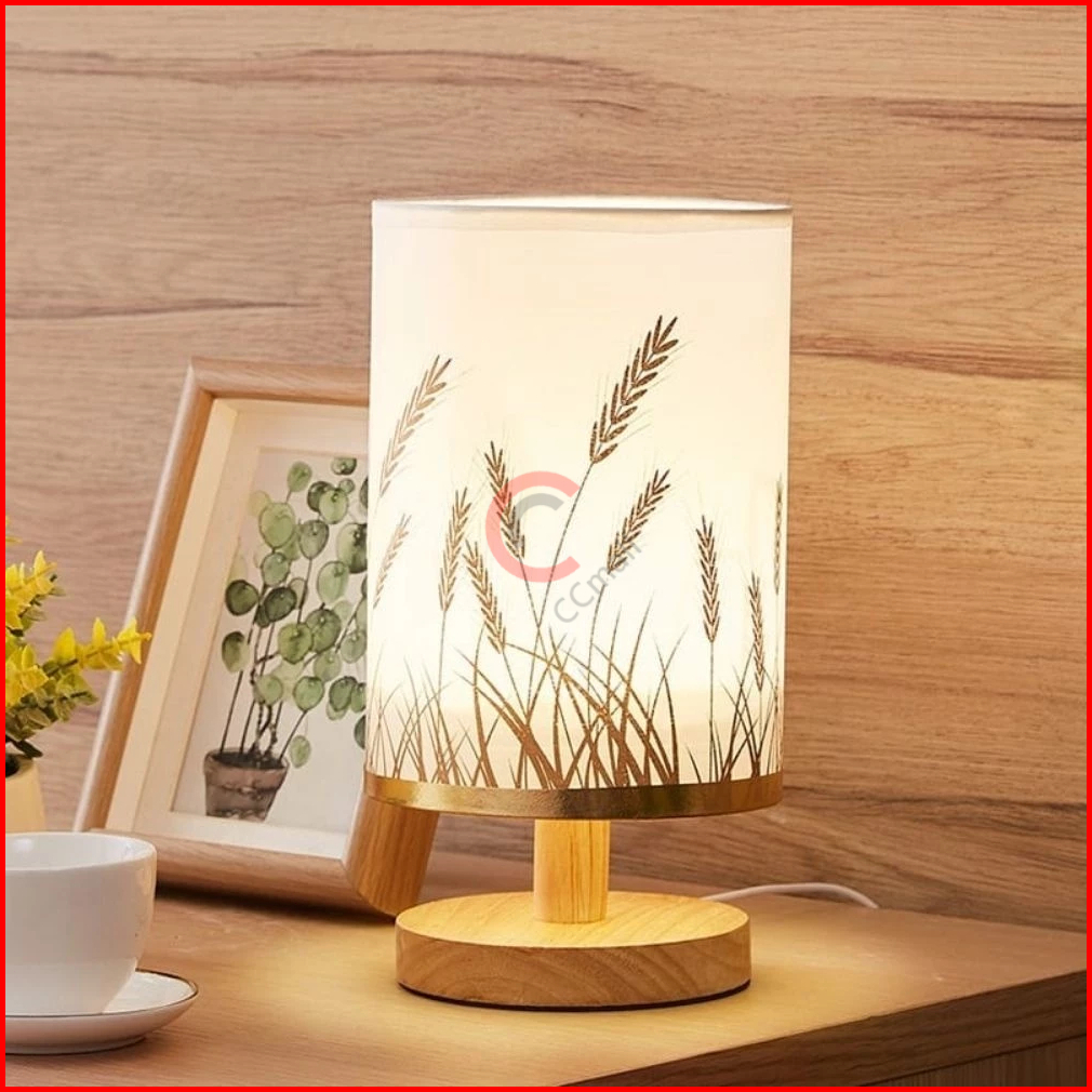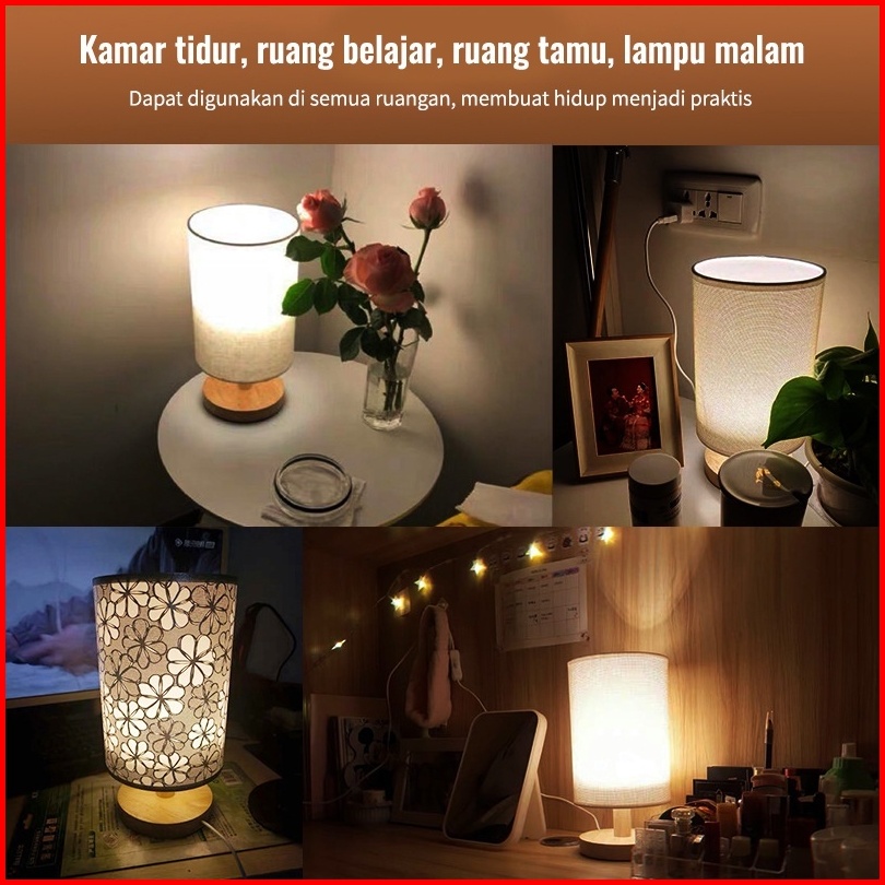 Lampu Tidur Led Wireless Remote Control 3 Color Lampu Wood Meja Hias Kain Led Lampu Vintage Gaya Jepang Lampu