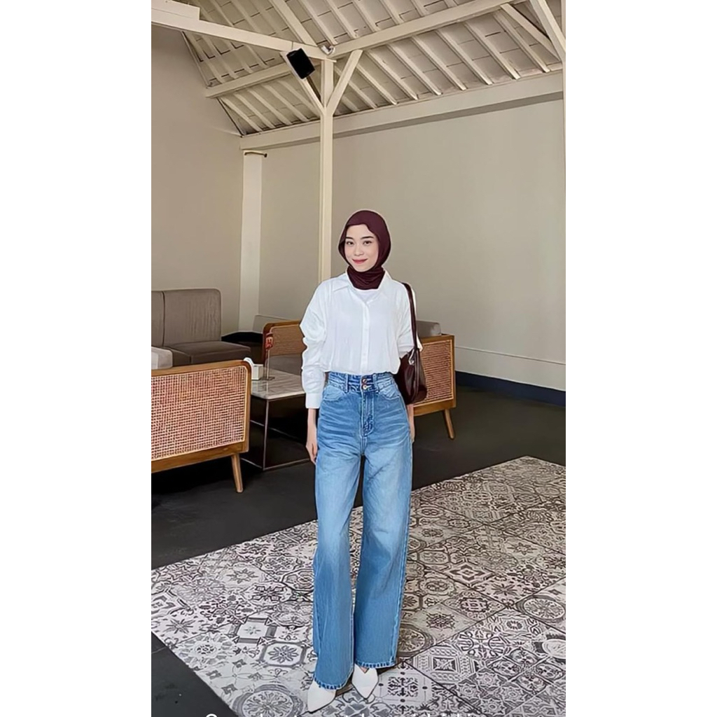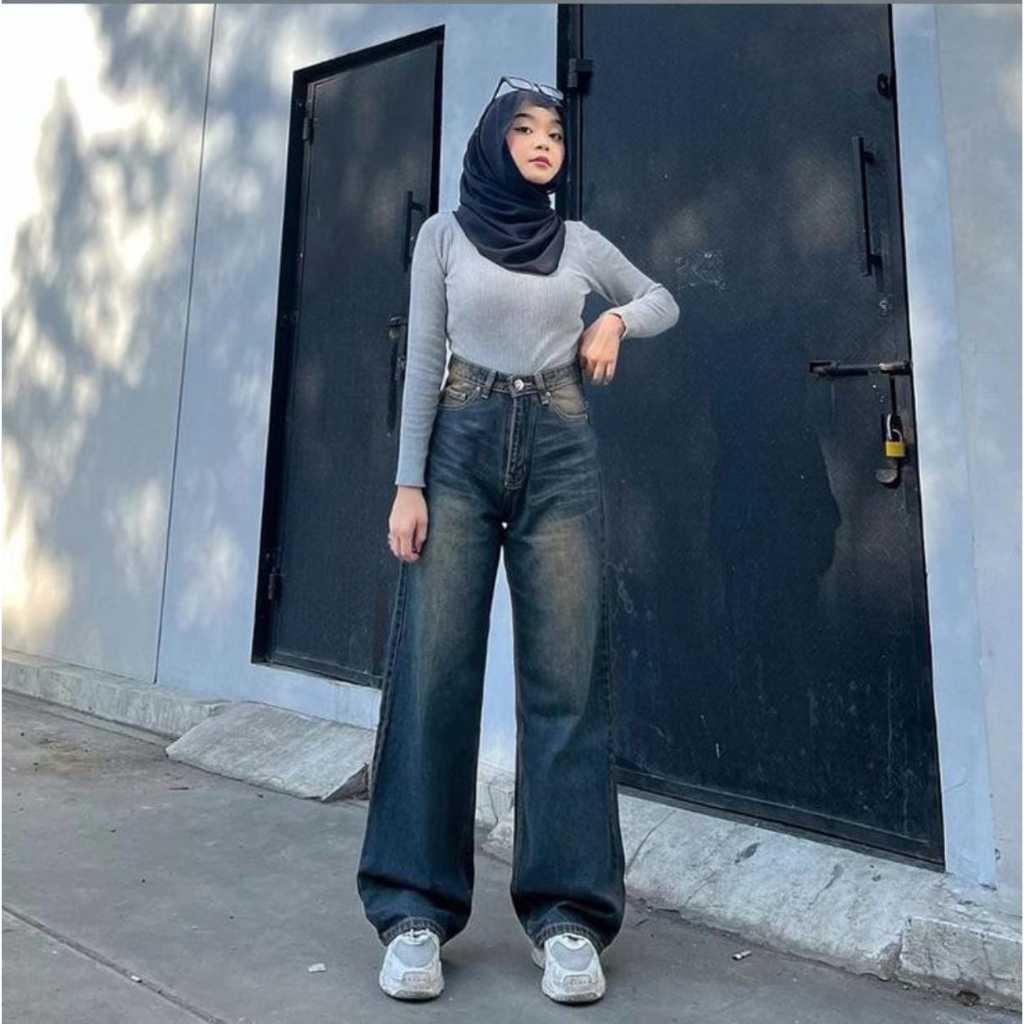 Highwaist Oversize Baggy Loose Jeans - Celana Jeans Wanita Highwaist