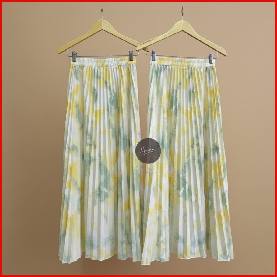 Limited Sale Haseena Bundling Deal Rok Plisket Marble Ceisya Tie Dye Skirt Free Stocking Hitam
