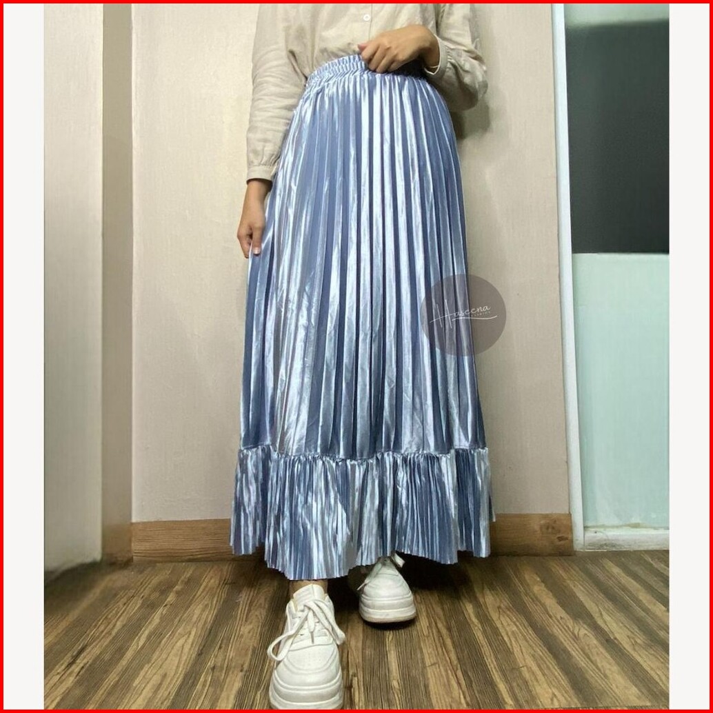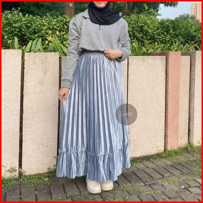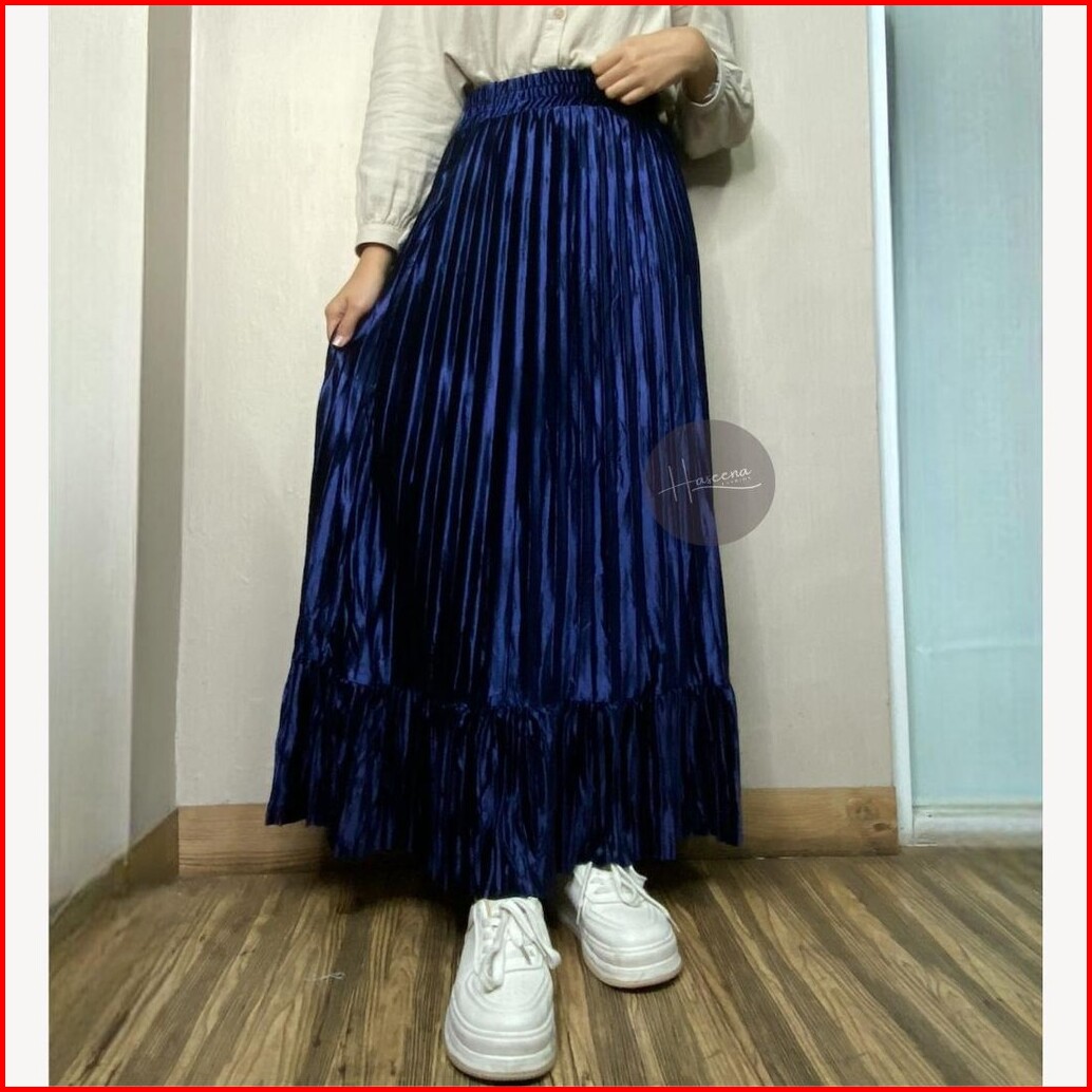 Haseena Rok Plisket Susun Velvet Mafaza Mayung Bawahan Bludru Wanita Muslim Ruffle Pleated Skirt