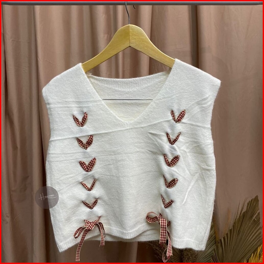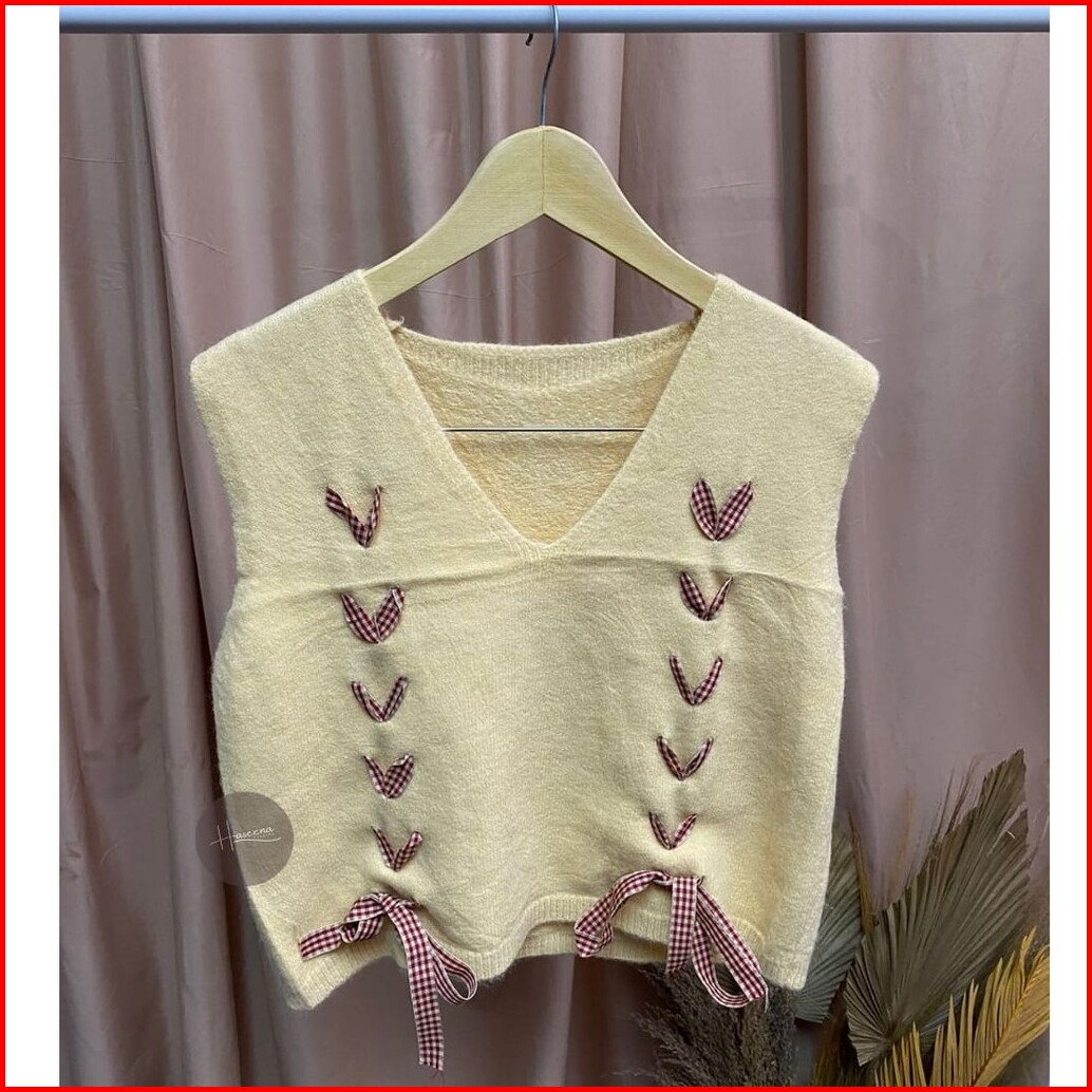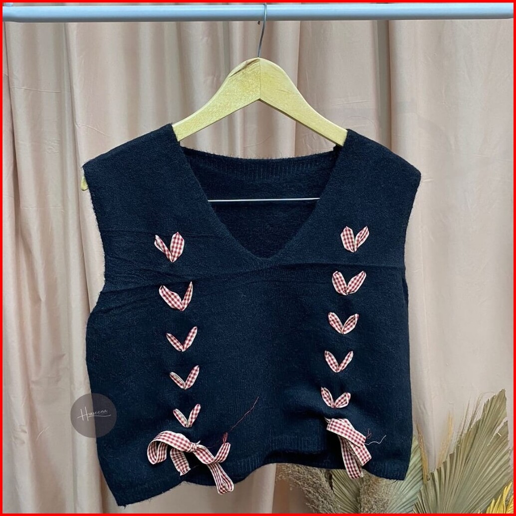 Haseena Vest Knit Aqeela Rompi Love Basic Simpel Outer Wanita Rajut Halus