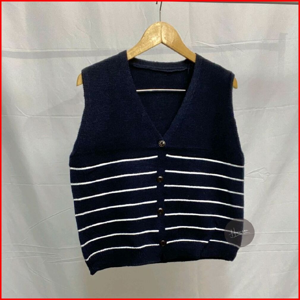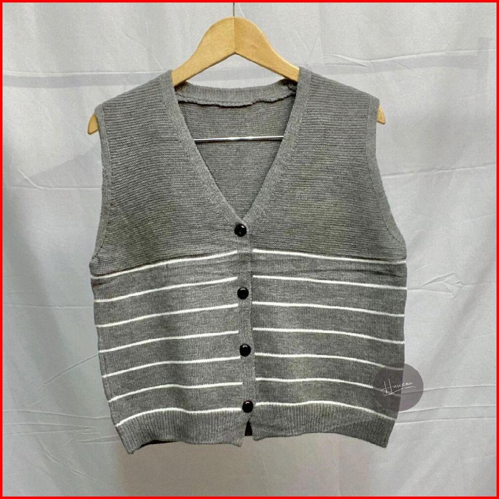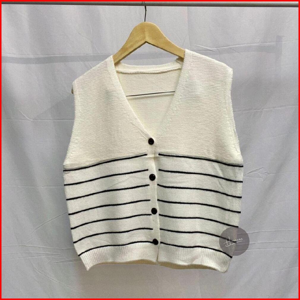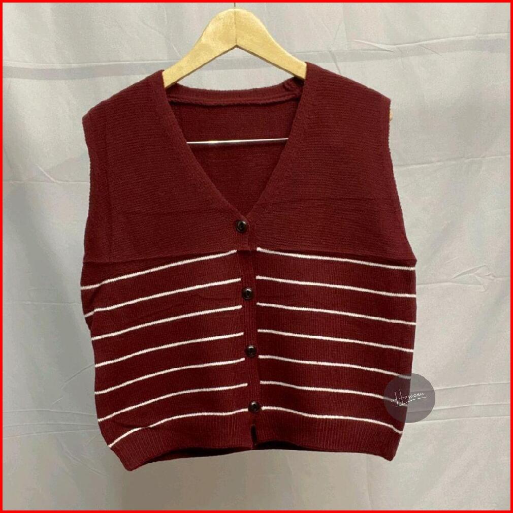 Haseena Vest Knit Meisha Stripe Rajut Wanita Tebal Motif Garis Blaster Fashion Daily