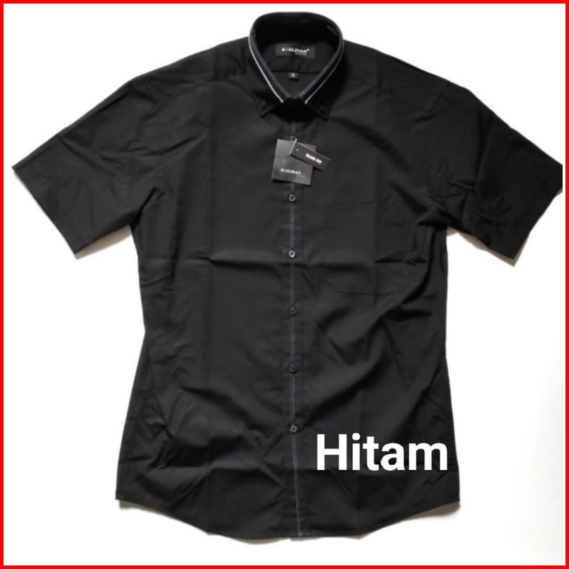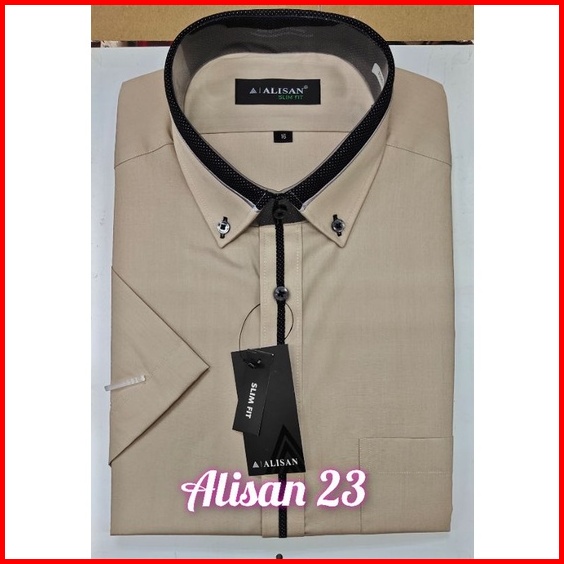 Kemeja Alisan Slim Fit List Tengah Lengan Pendek 100 Ori