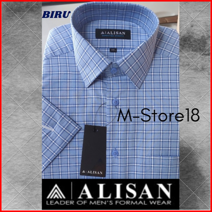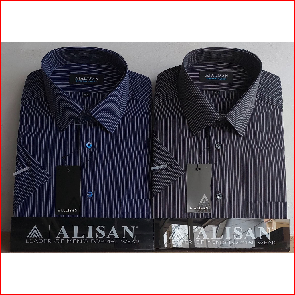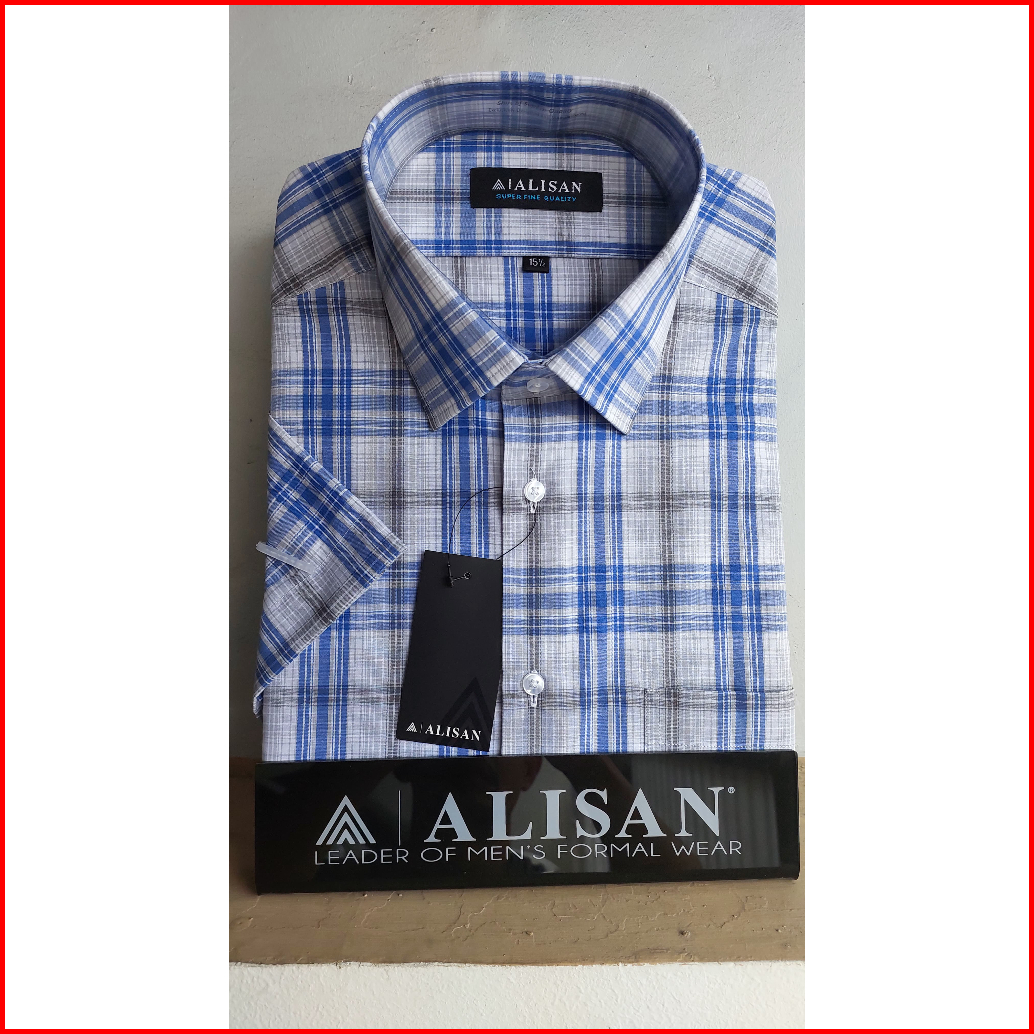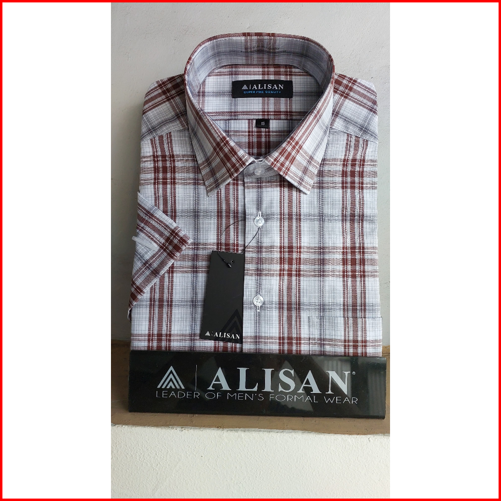 Kemeja Alisan Motif Kotak Salur Lengan Pendek Reguler