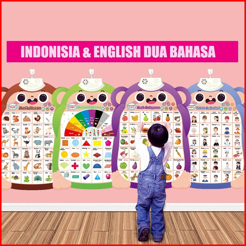 Jihui Poster Edukasi Suara Poster Bahasa Indonesia Inggris Arab Poster Gantung Belajar Anak