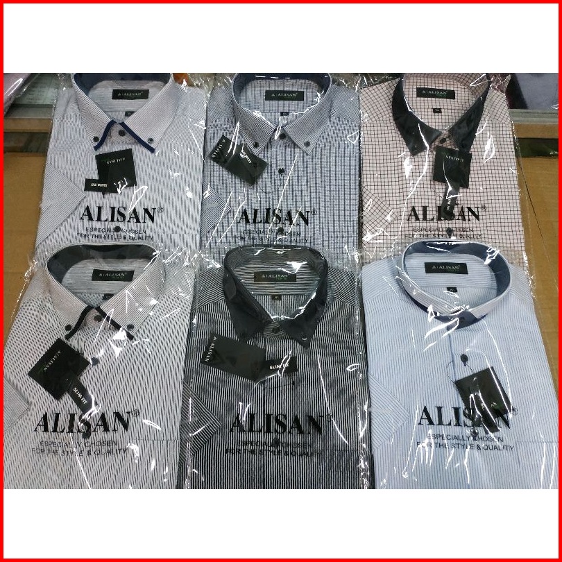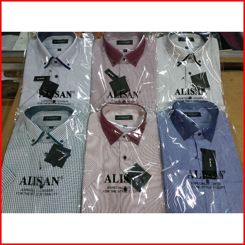 Kemeja Alisan Motif Slimfit Dan Reguler Lengan Pendek. Size 14.5 S -16 Xl