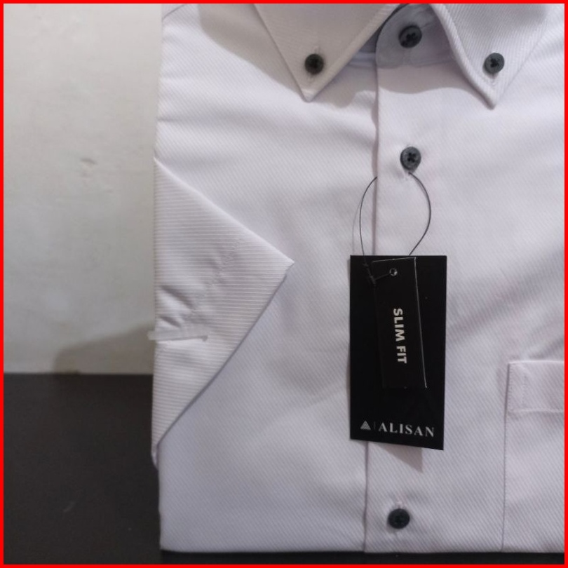 Kemeja Alisan Dobby Putih Pendek Slimfit Cotton 100