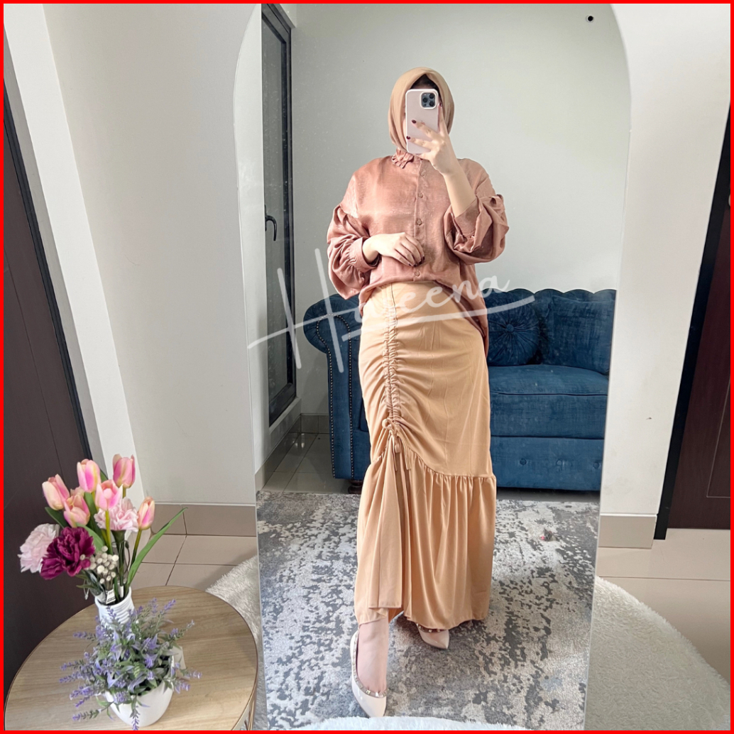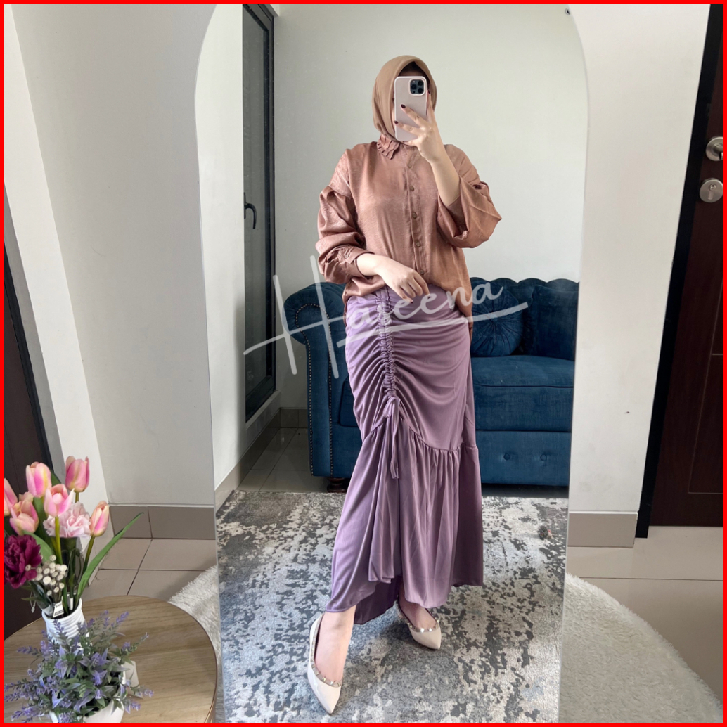 Haseena Rok Wanita Panjang Shova Model Tali Serut Samping Casual Flowy Skirt