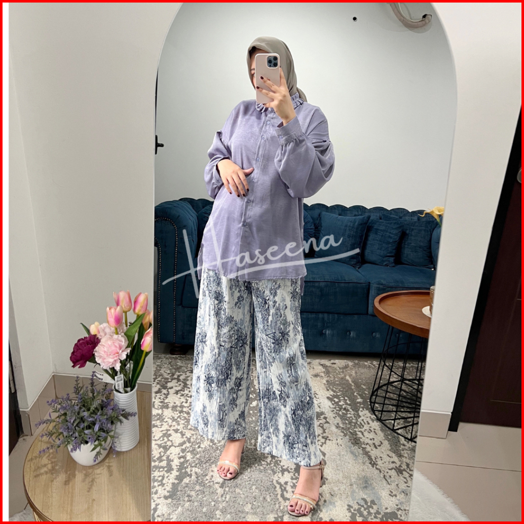 Haseena Celana Kulot Plisket Bella Motif Prada High Waist Dewasa All Size Jumbo