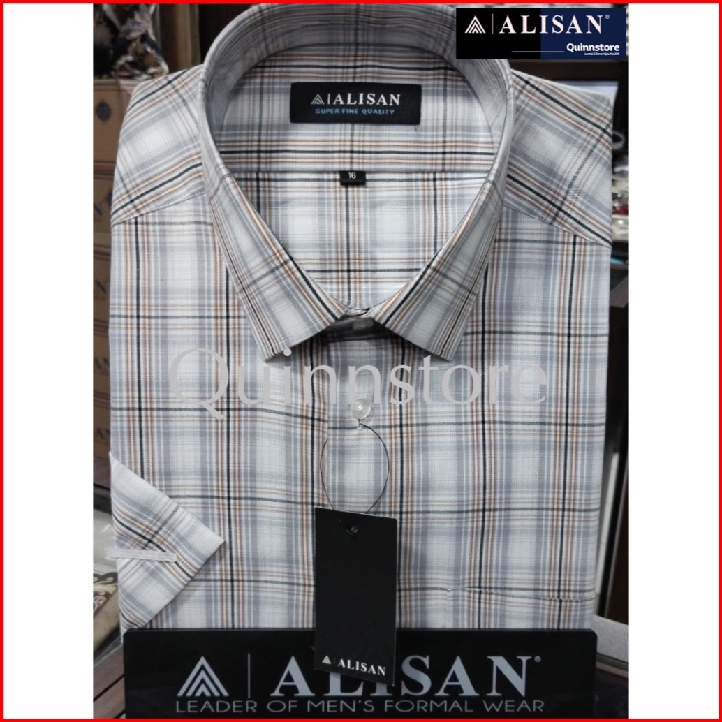 Alisan Original Kemeja Motif Garis - Kotak - Lengan Pendek - Reguler - Varian Warna - Varian Size