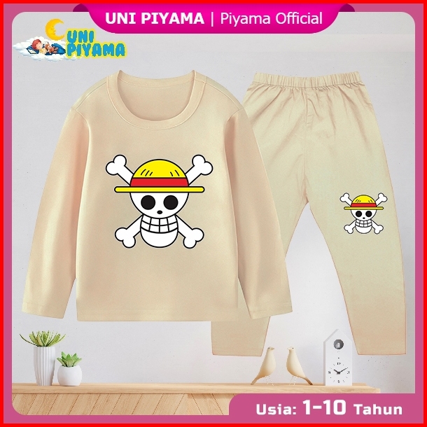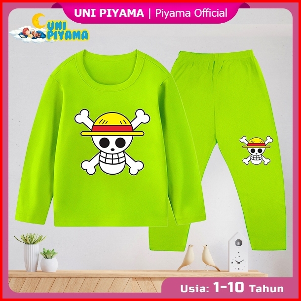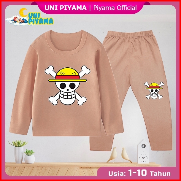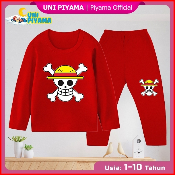 Baju Tidur One Peace Luffy Desain Bendera Bajak Laut Topi Jerami Stelan Panjang Anak Cowok Atau Cewek Usia 1-10tahun 193