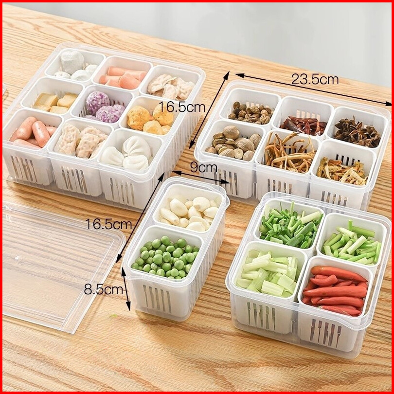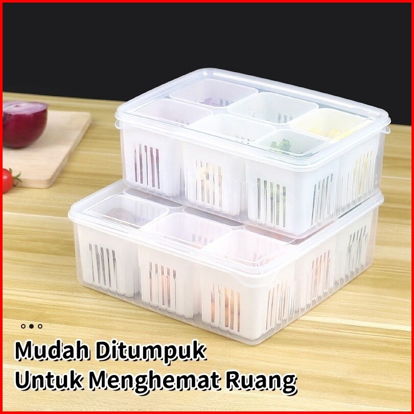 Kotak Penyaring Wadah Bawang 4 6 9 Sekat Tempat Buah Sayuran Dengan Penutup Penyimpanan Putih