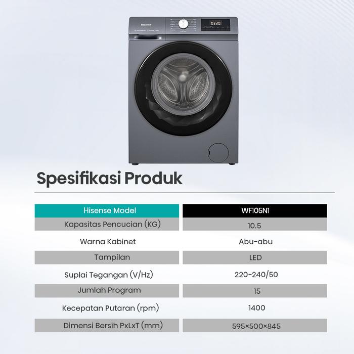 Hisense Mesin Cuci Front Loading 10.5KG - Jet Wash Durable Inverter - mesin cuci bukaan depan