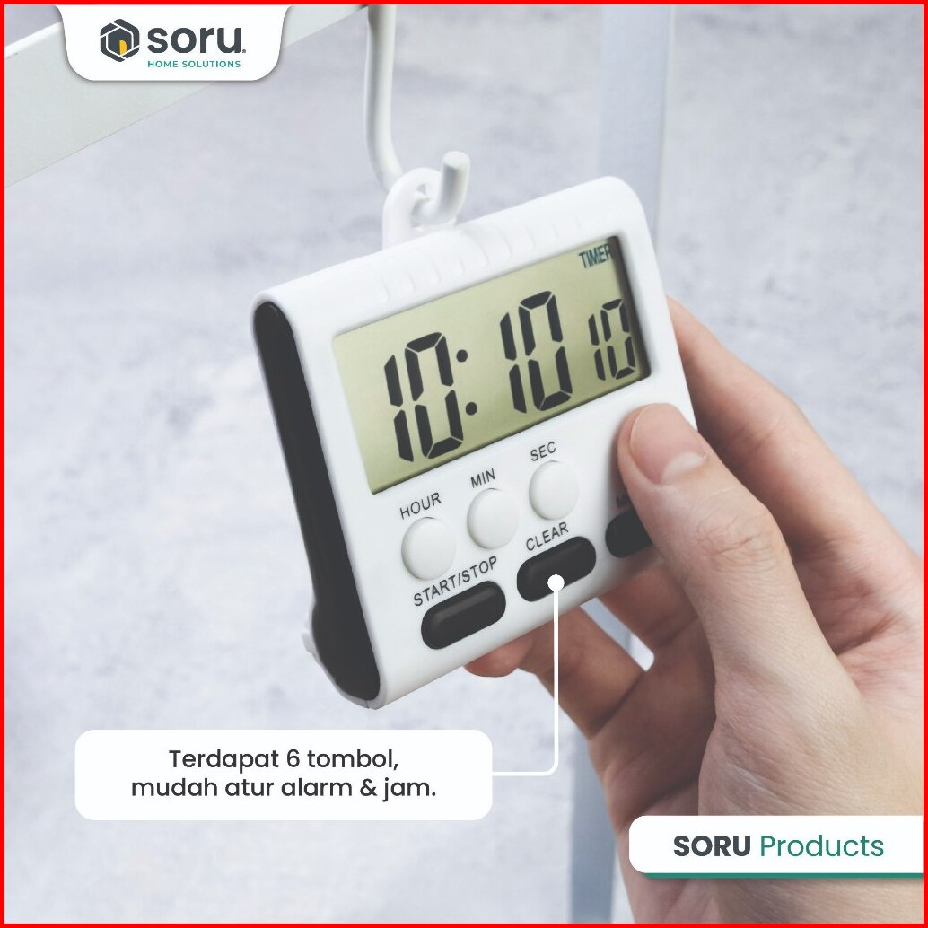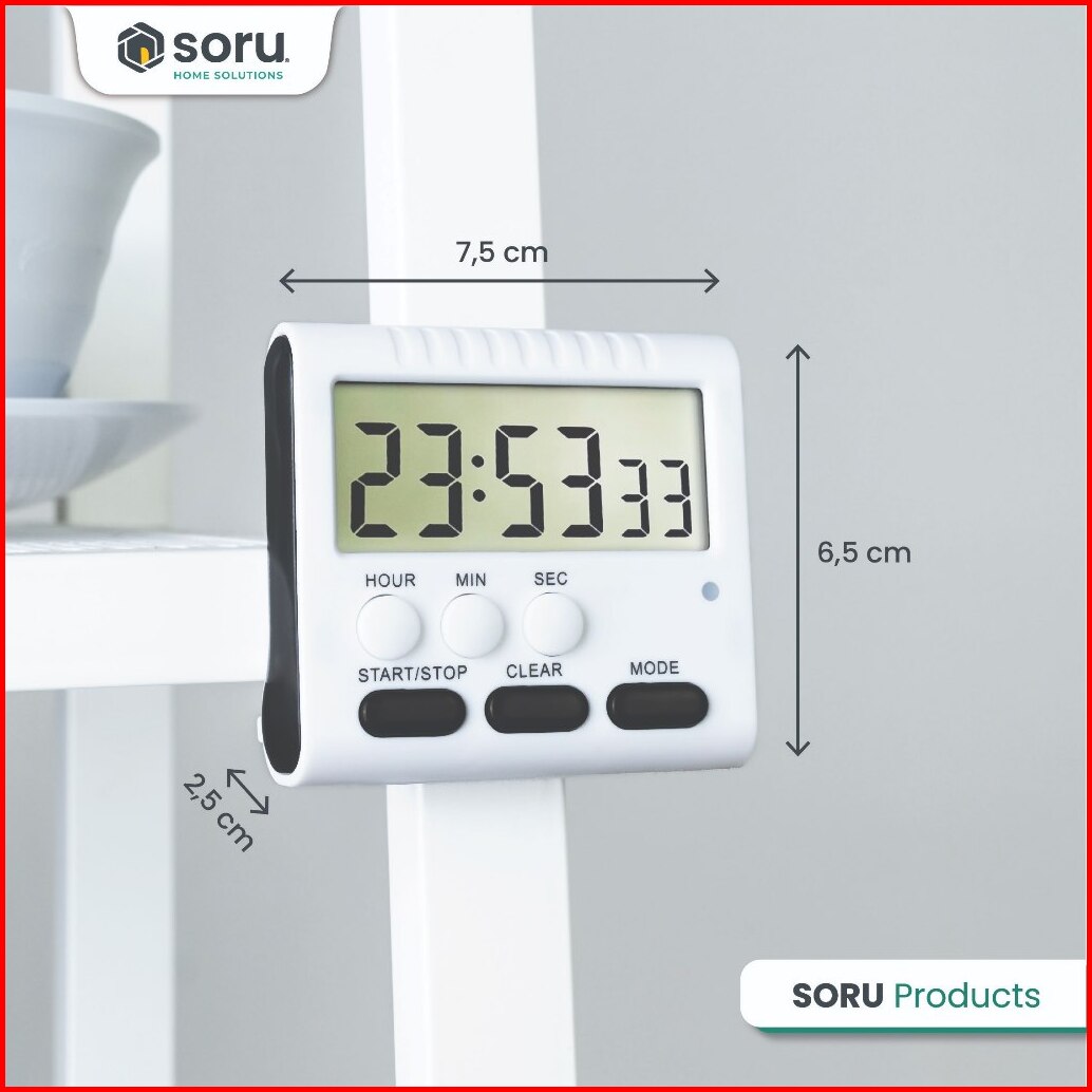 Soru - Kitchen Timer Masak Digital - Magnetic Clock Mode 12 24 Hours Layar Lcd Stopwatch Countdown