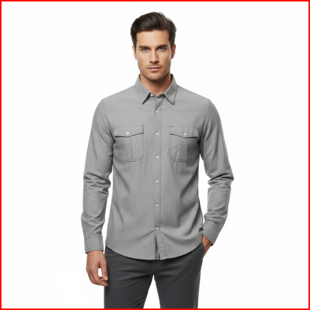 Tangiowild Kemeja Jeans Pria Denim Lengan Panjang
