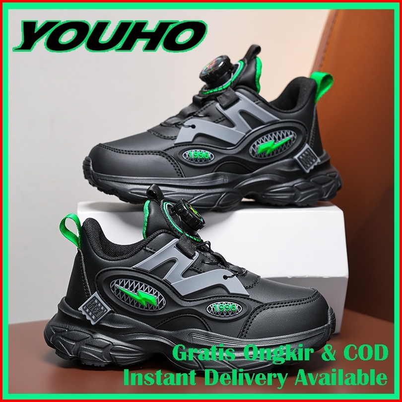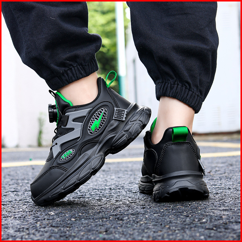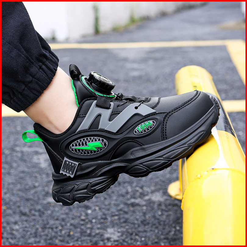 J402 Sepatu Anak Baru Sepatu Kampus Bahan Kulit Kualitas Tinggi Ukuran 28-40 Sepatu Anak Warna Hitam