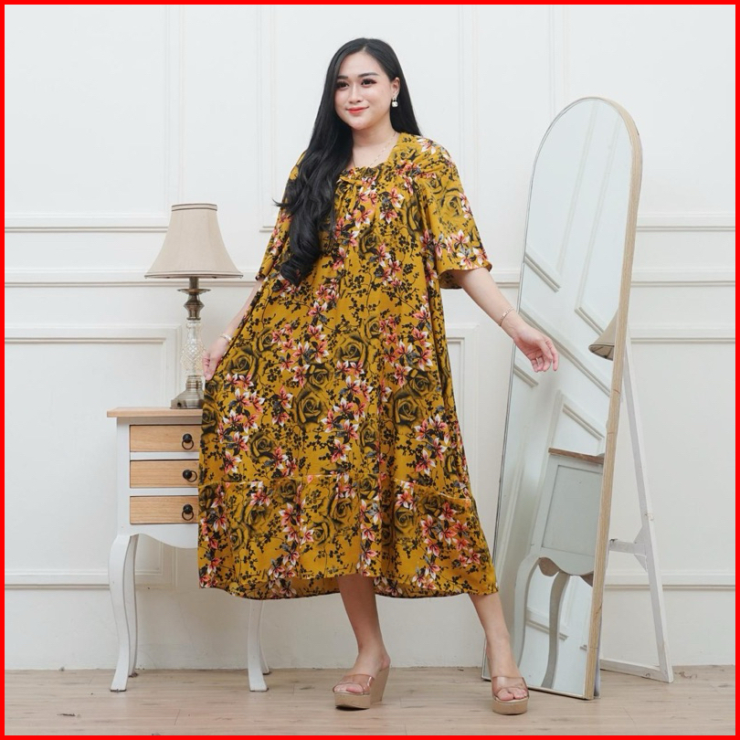 Daster Jumbo Muat Bb 100 Kg Motif Bunga Bahan Rayon Premium Ld 130 Lengan Pendek Daster Fuji Karet Pekalongankekinian Ju