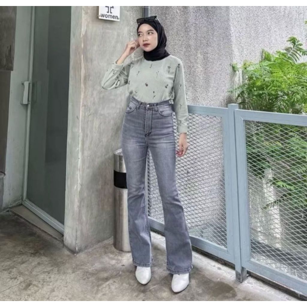 Highwaist Cutbray Jeans Retro 114 - Celana Jeans Cutbray Premium