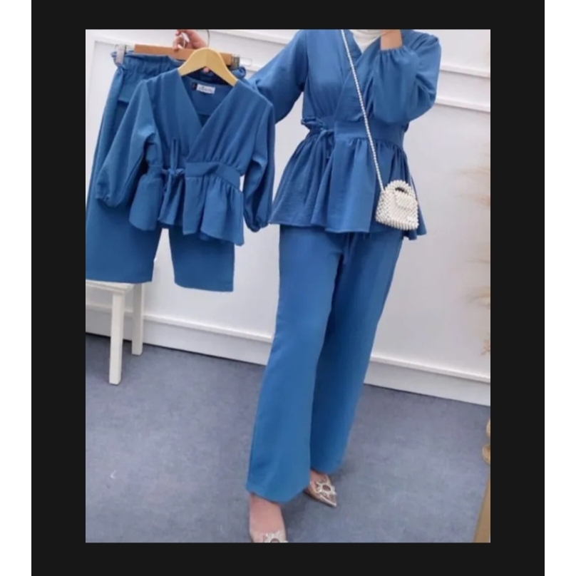 Baju setelan couple wanita ibu dan anak bahan cringkle airflow terbaru