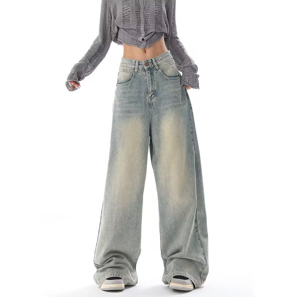 KATERMEN Jeans Ukuran Besar-Jeans biru-Jeans wanita-Jeans longgar kaki lebar-Jeans pinggang tinggi