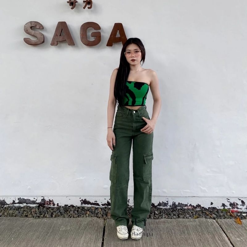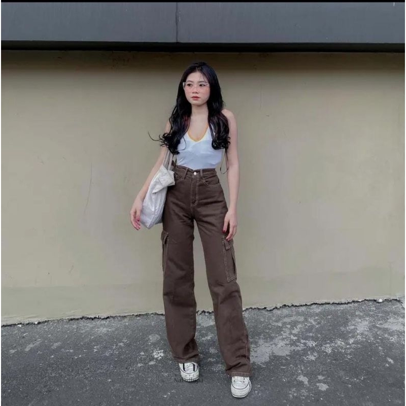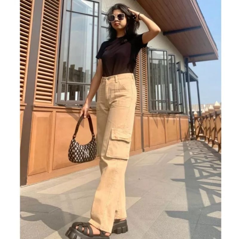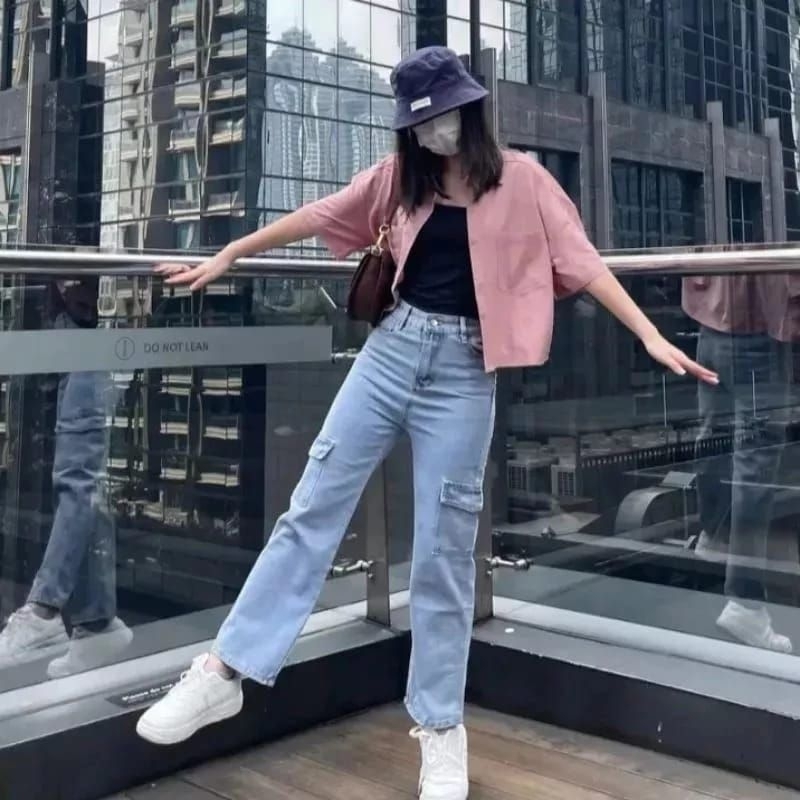 Celana cargo jeans higwaist || cargo pants || kargo korean style